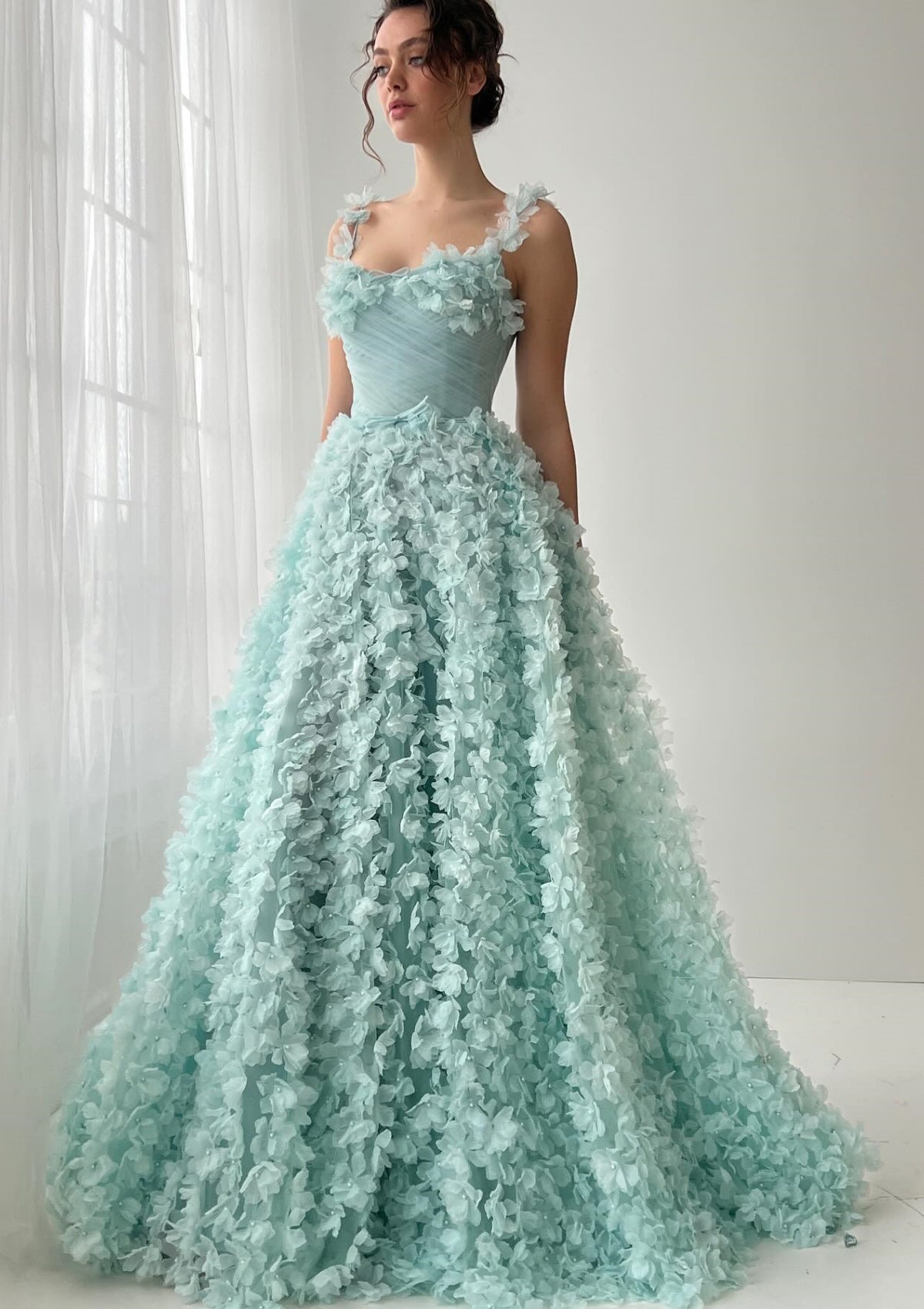 Romantic 3D Floral Embellished Spaghetti Strap Evening Dress