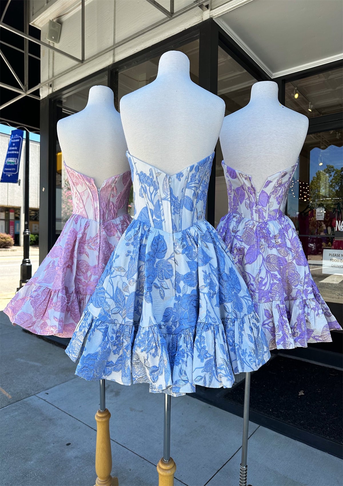 Romantic Sweetheart Pastel Floral Strapless Mini Homecoming Dress