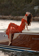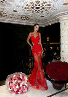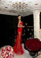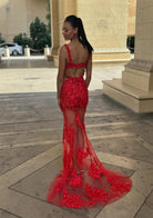 Mermaid Cutout Spaghetti Strap Red Floral Lace Sheer Evening Dress
