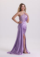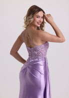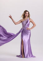 Draped Floating Piece Design Asymmetrical Neck Appliques Prom Dress