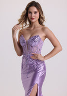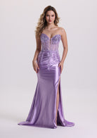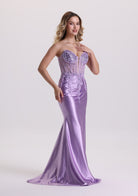 Elegant Sequin Appliques Satin Prom Dress with Slit