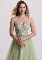 Gorgeous Spaghetti Strap Appliques A Line Tulle Prom Dress