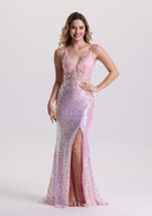 Luxury Spaghetti Strap Sequin Appliques Prom Dress