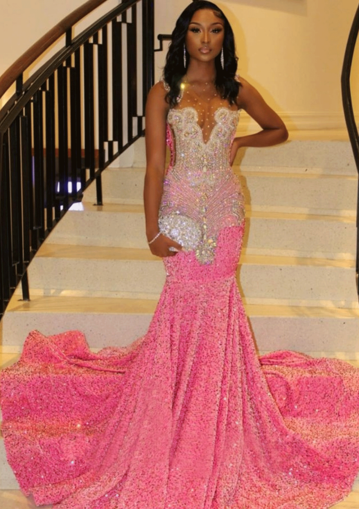 Illusion Plunging Neck Heavy Embellished Bejeweled Prom Dress