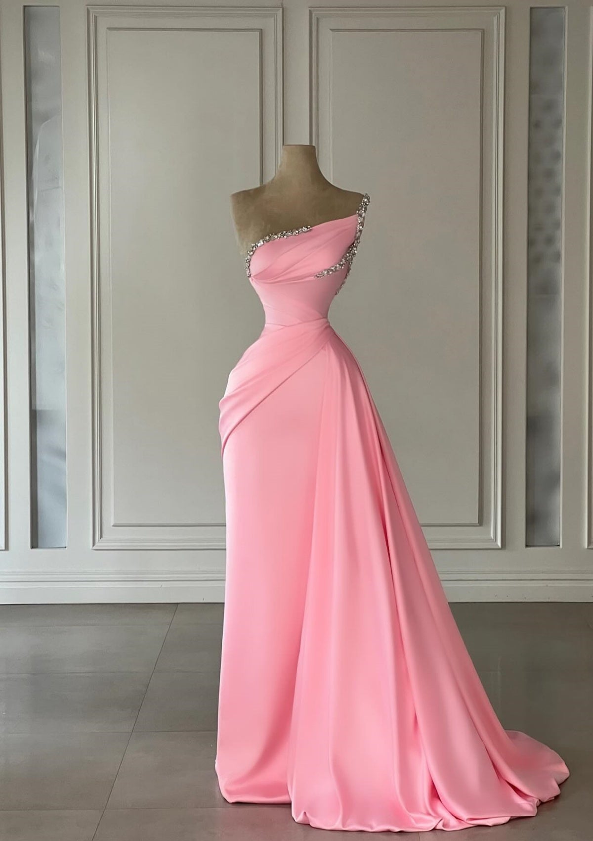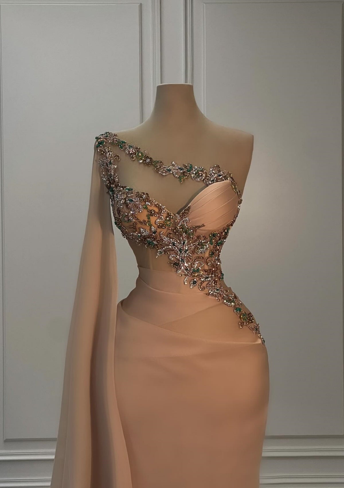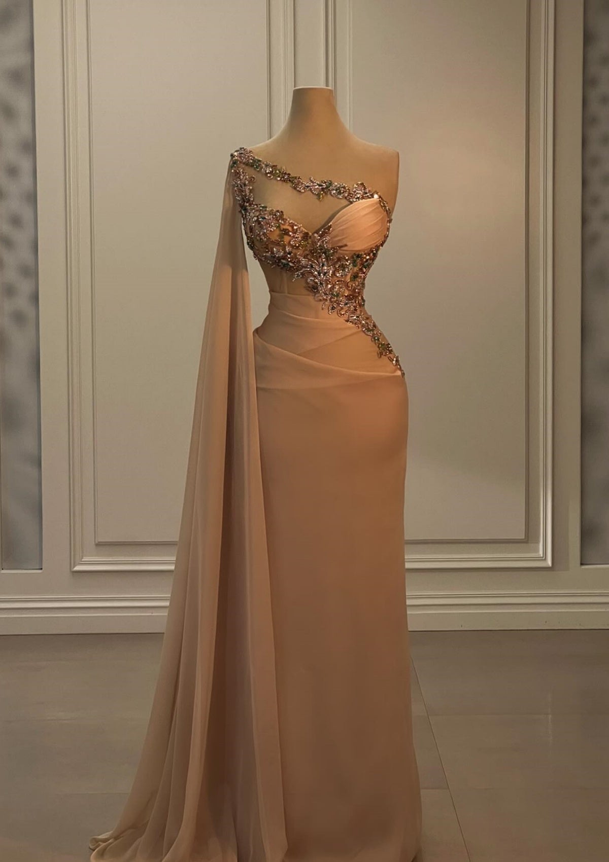 Designed One Shoulder Pleated Chiffon Prom Dress