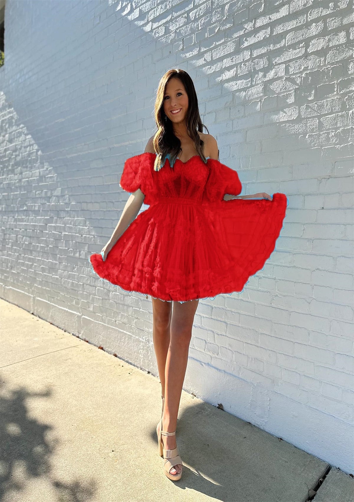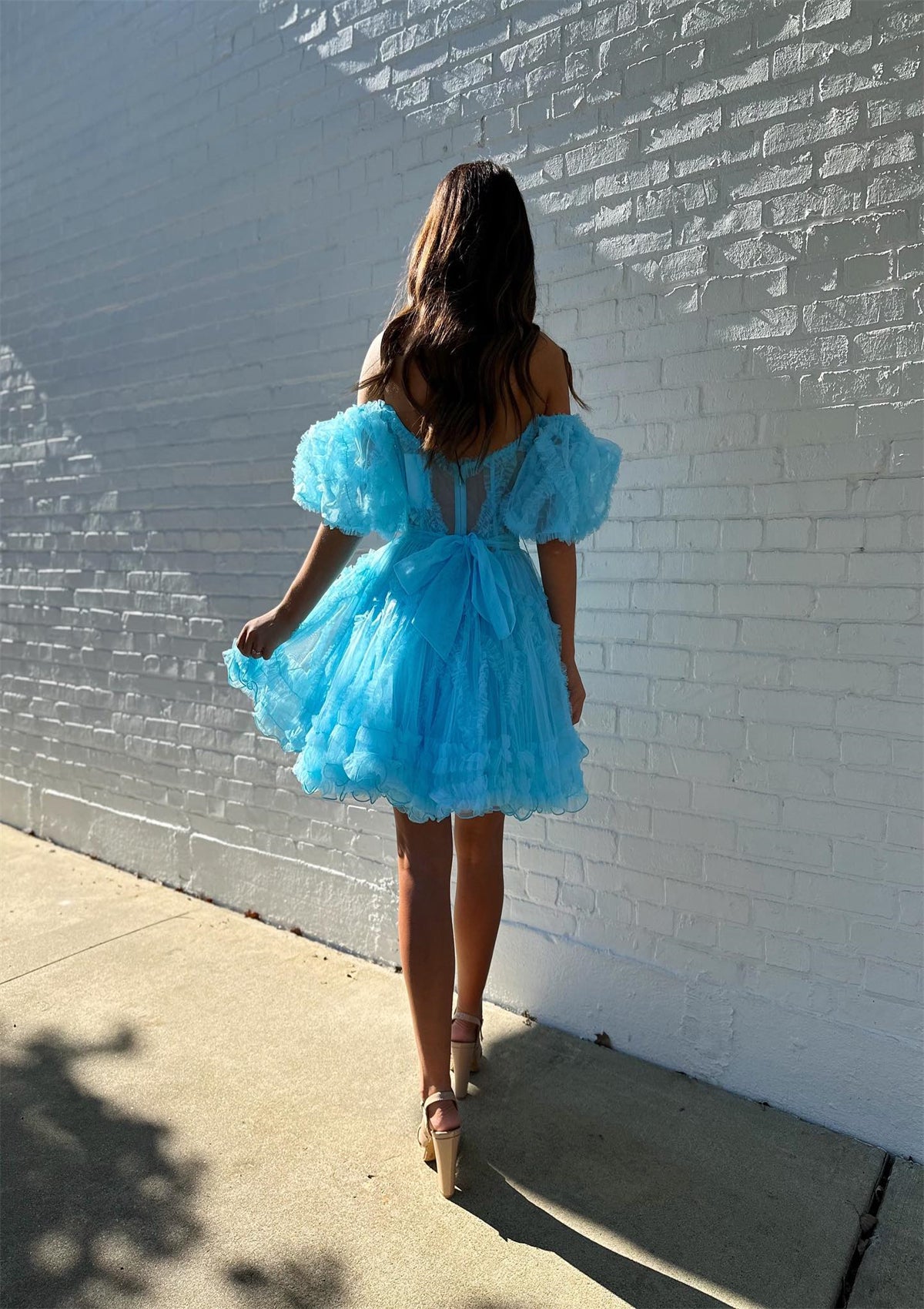 Dreamy Puffy Sleeves Corset Short Prom Dress