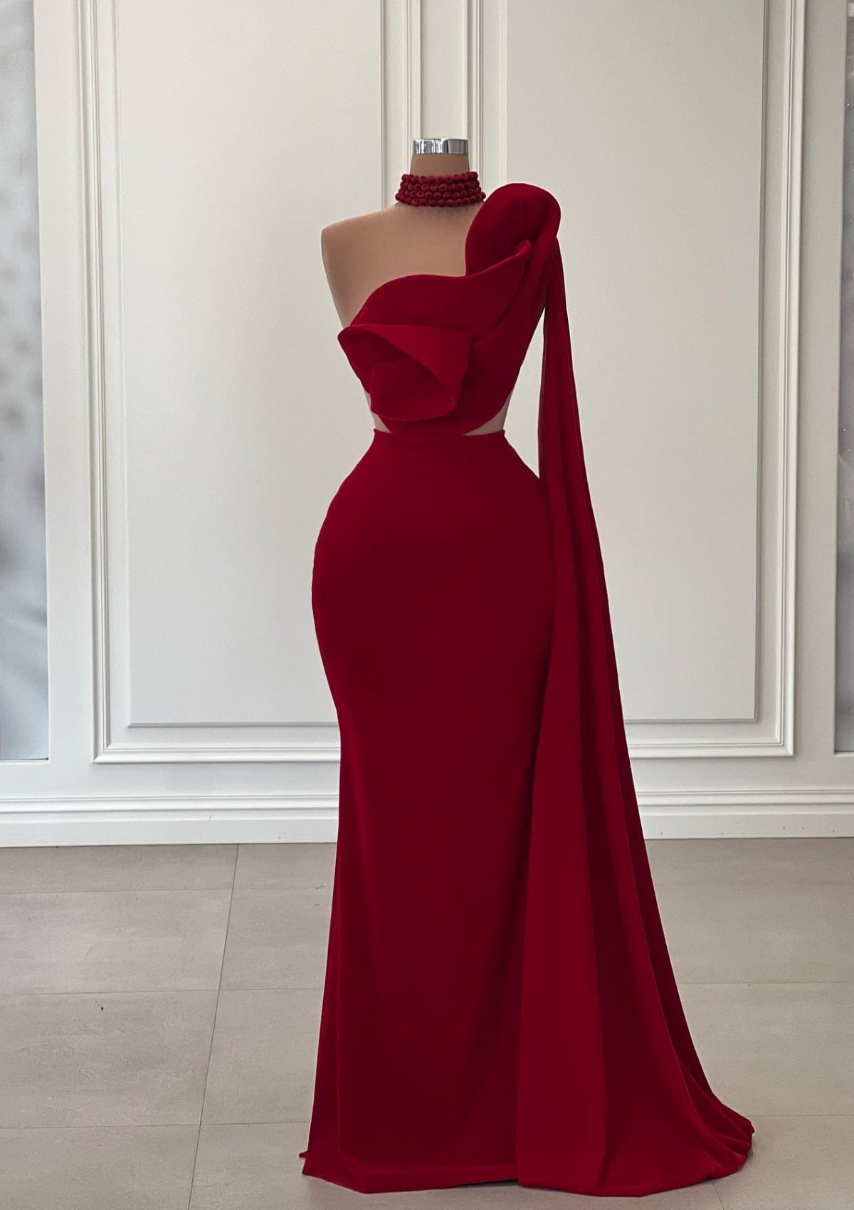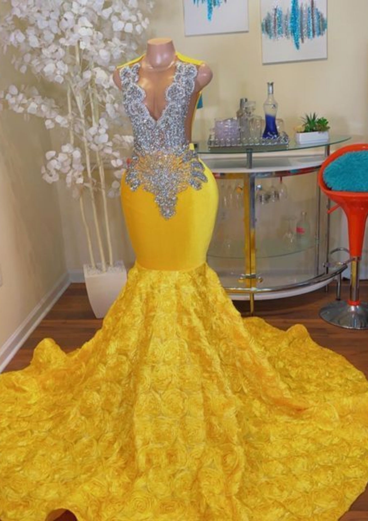Elegant Rhinestone Cutout Floral Evening Dress with Train