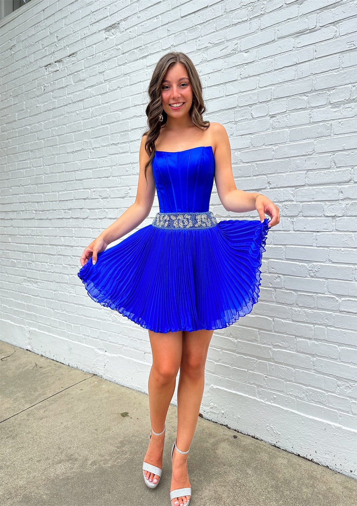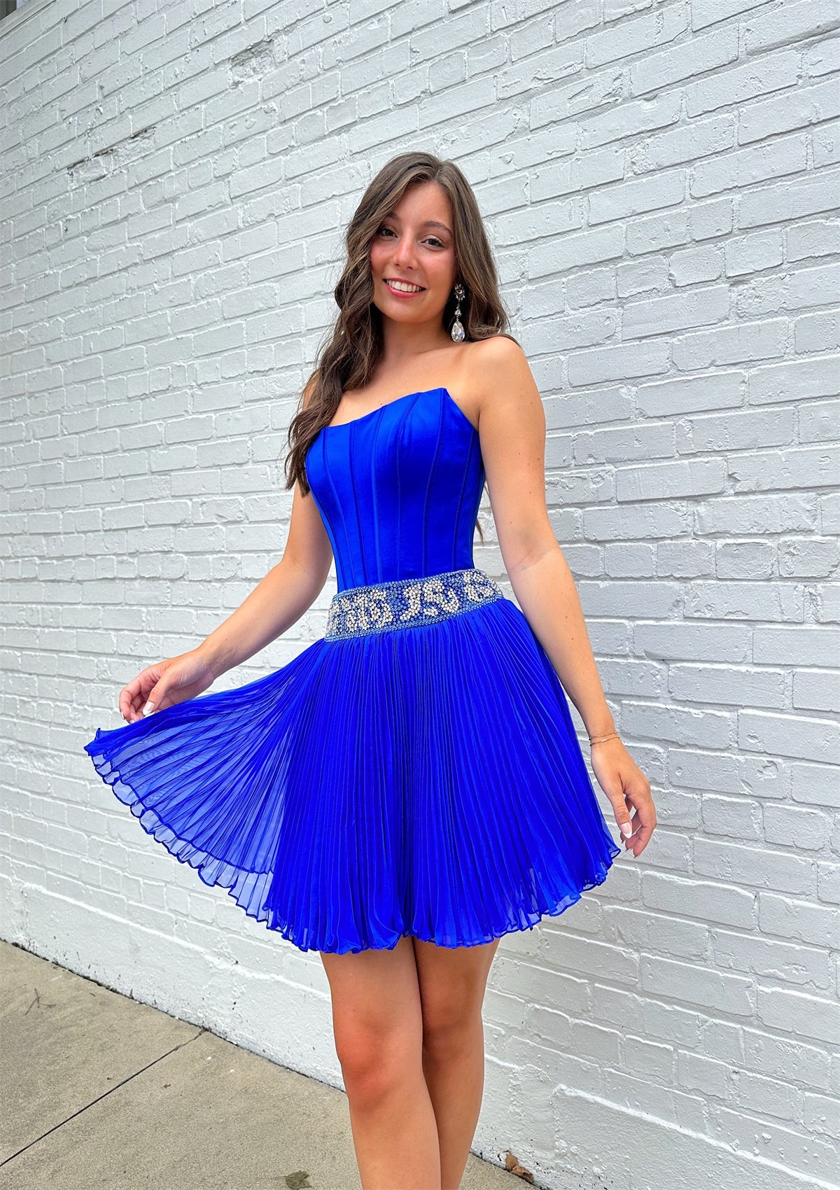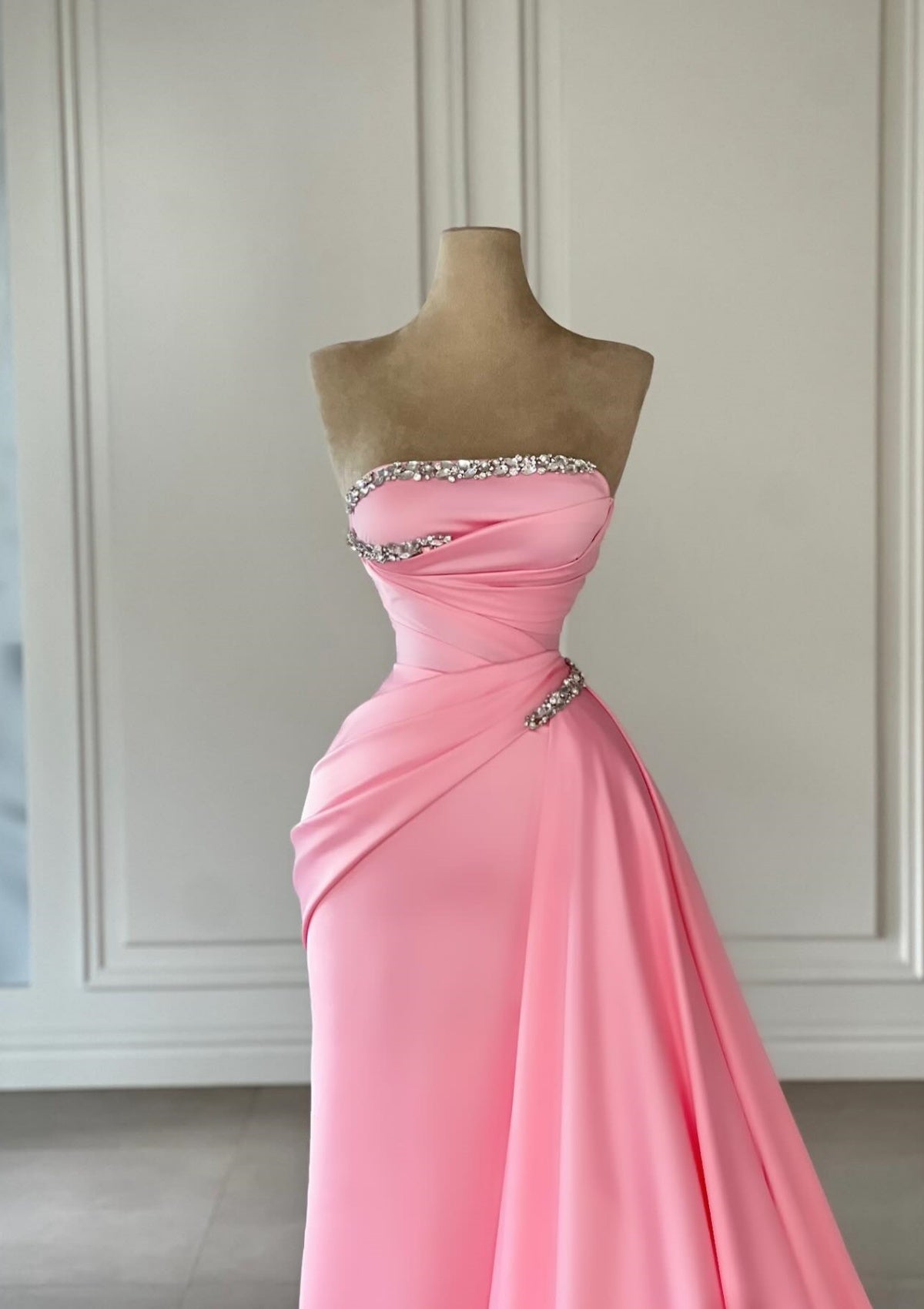 Elegant Sleeveless Pleated Evening Dress with Sparkling Crystal Trim