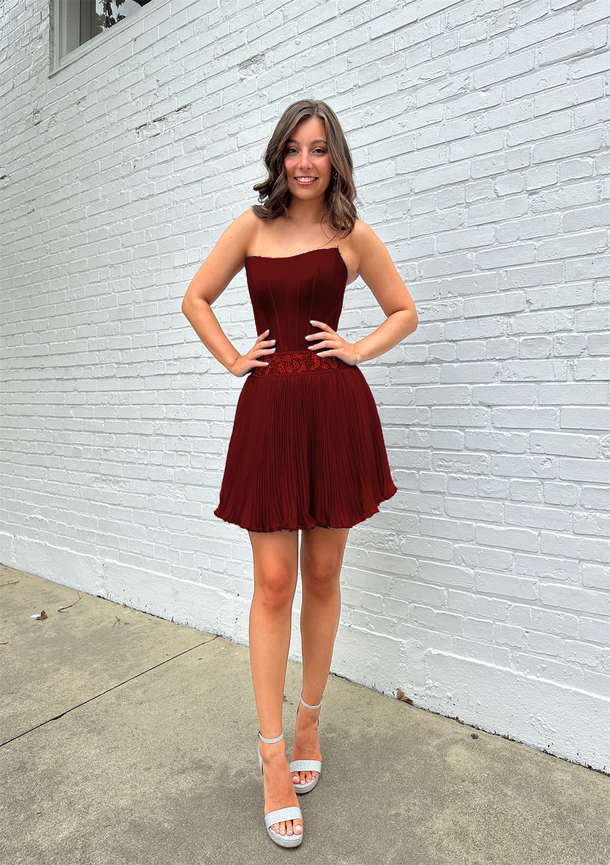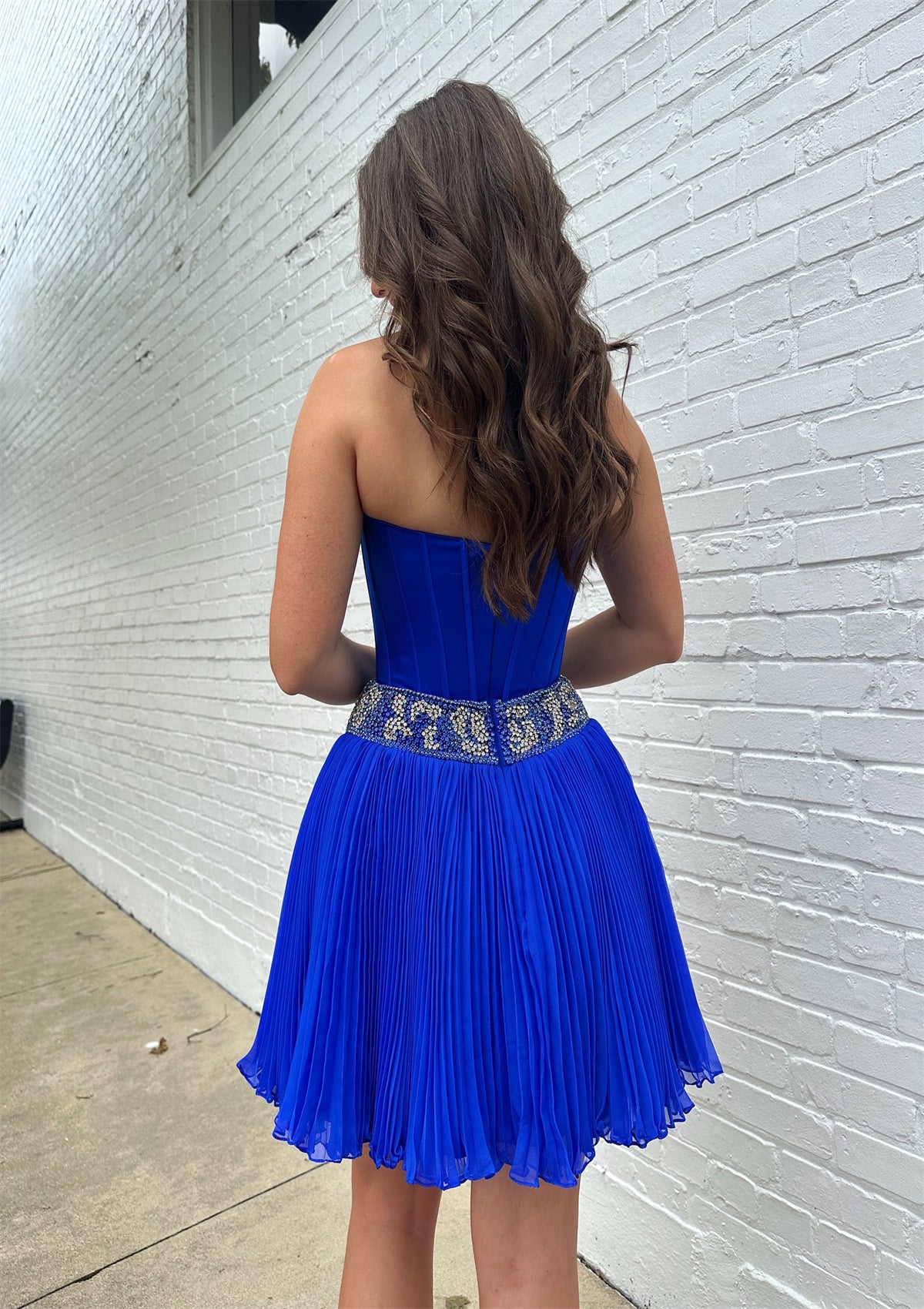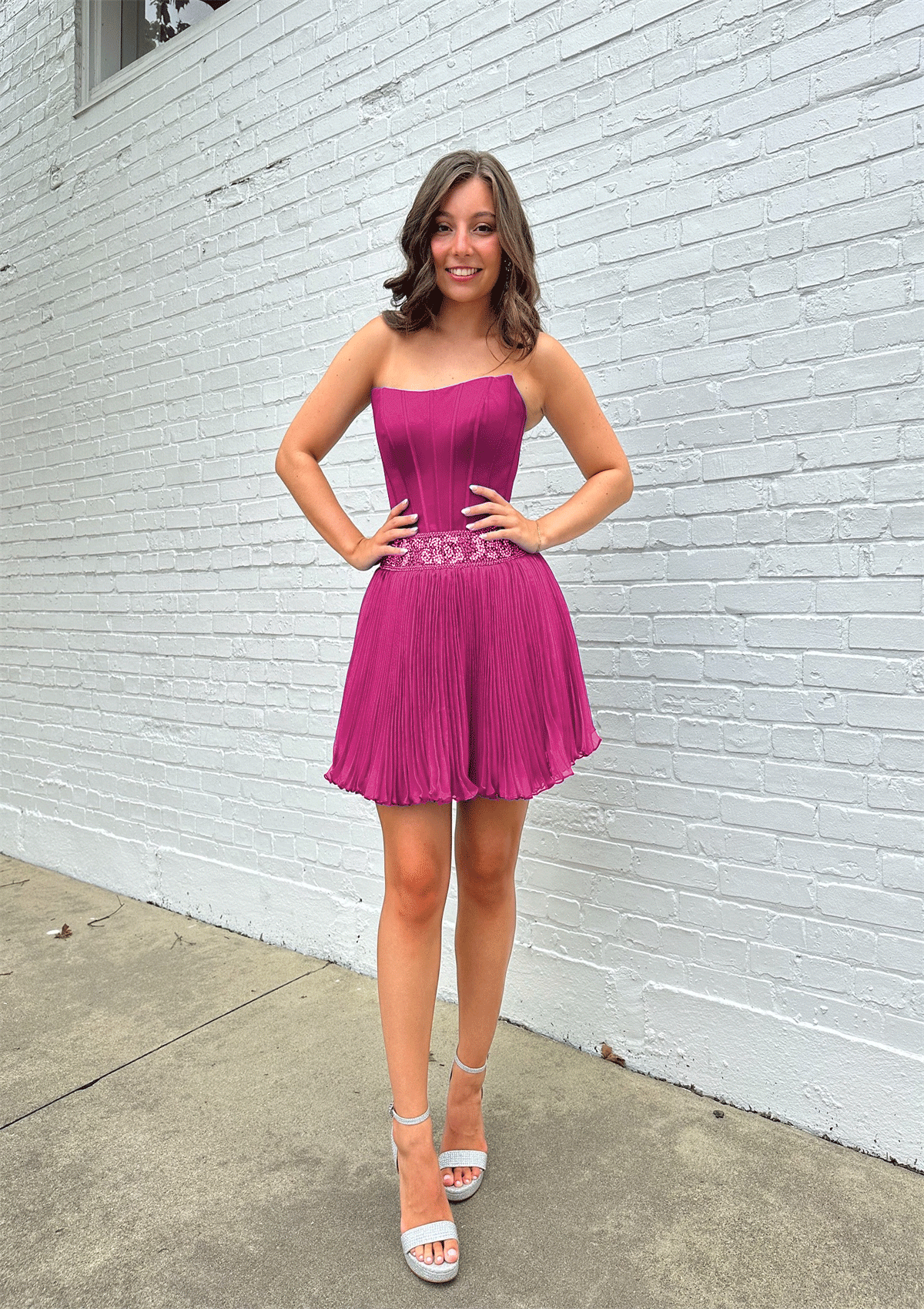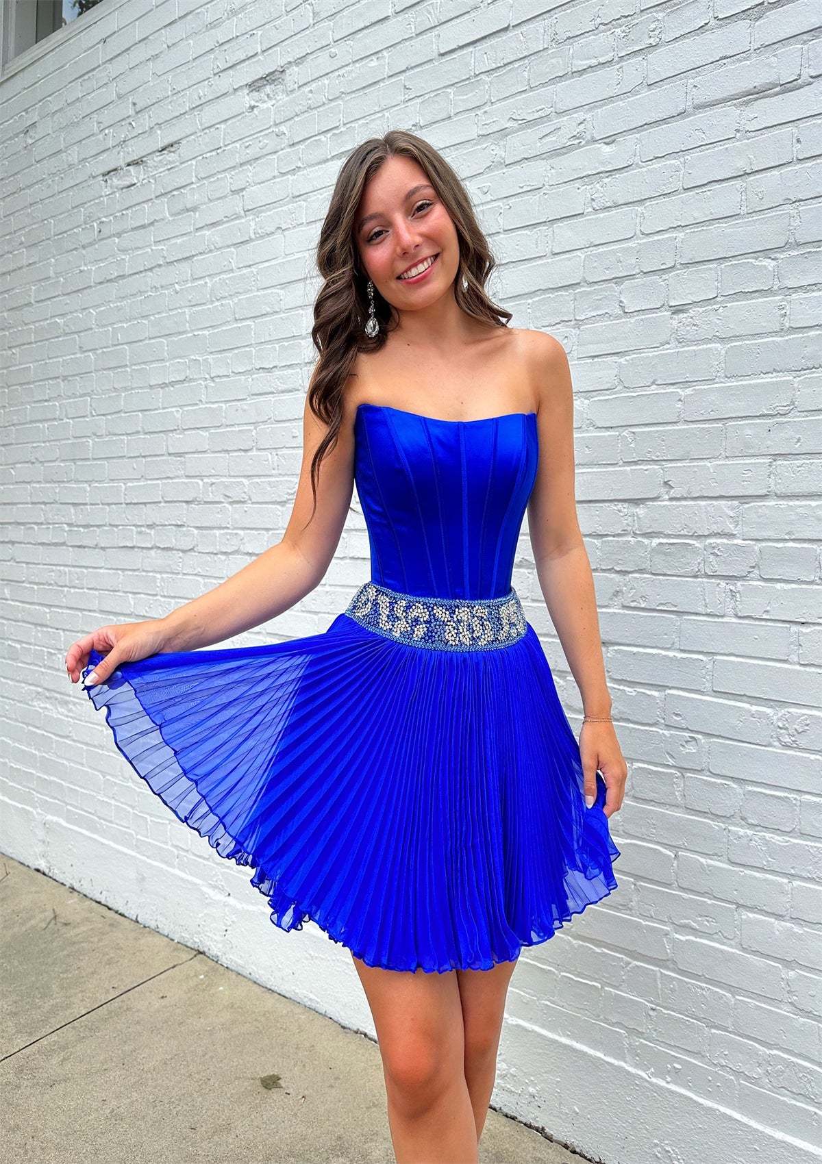 Elegant Sleeveless Pleated Evening Dress with Sparkling Crystal Trim