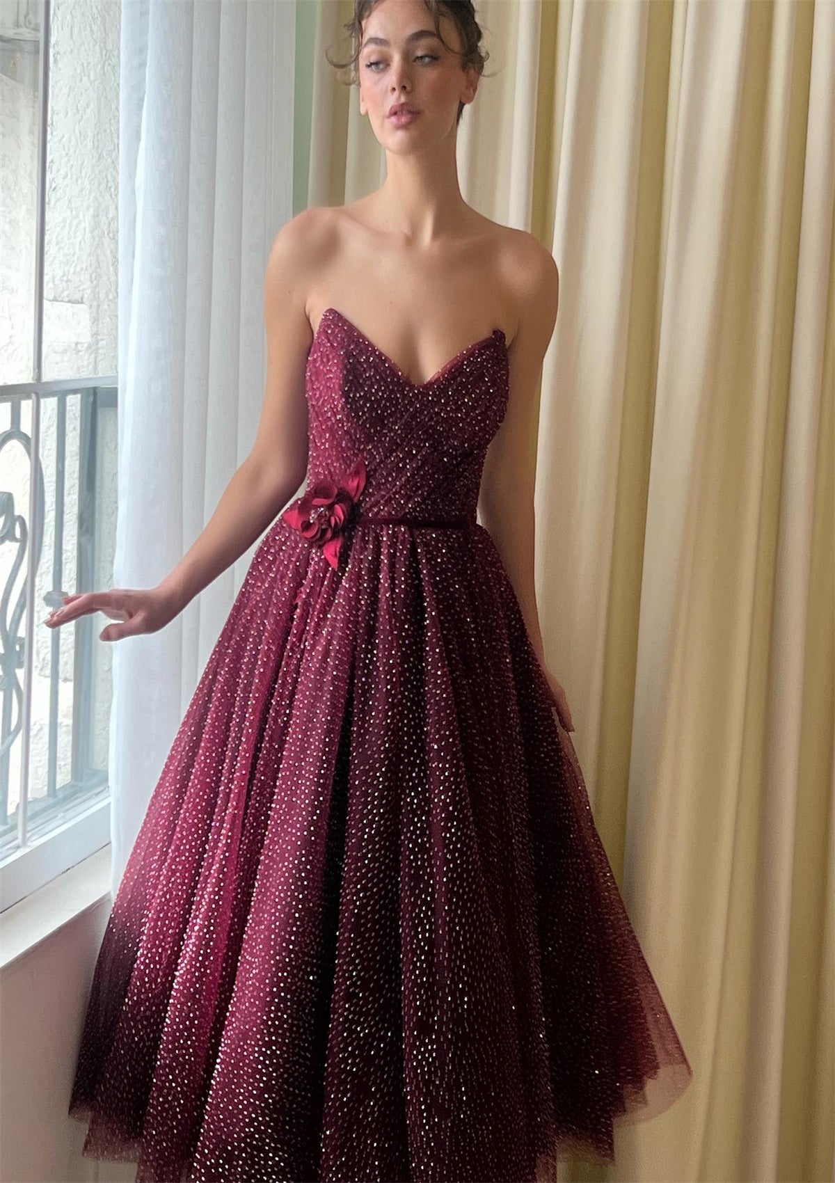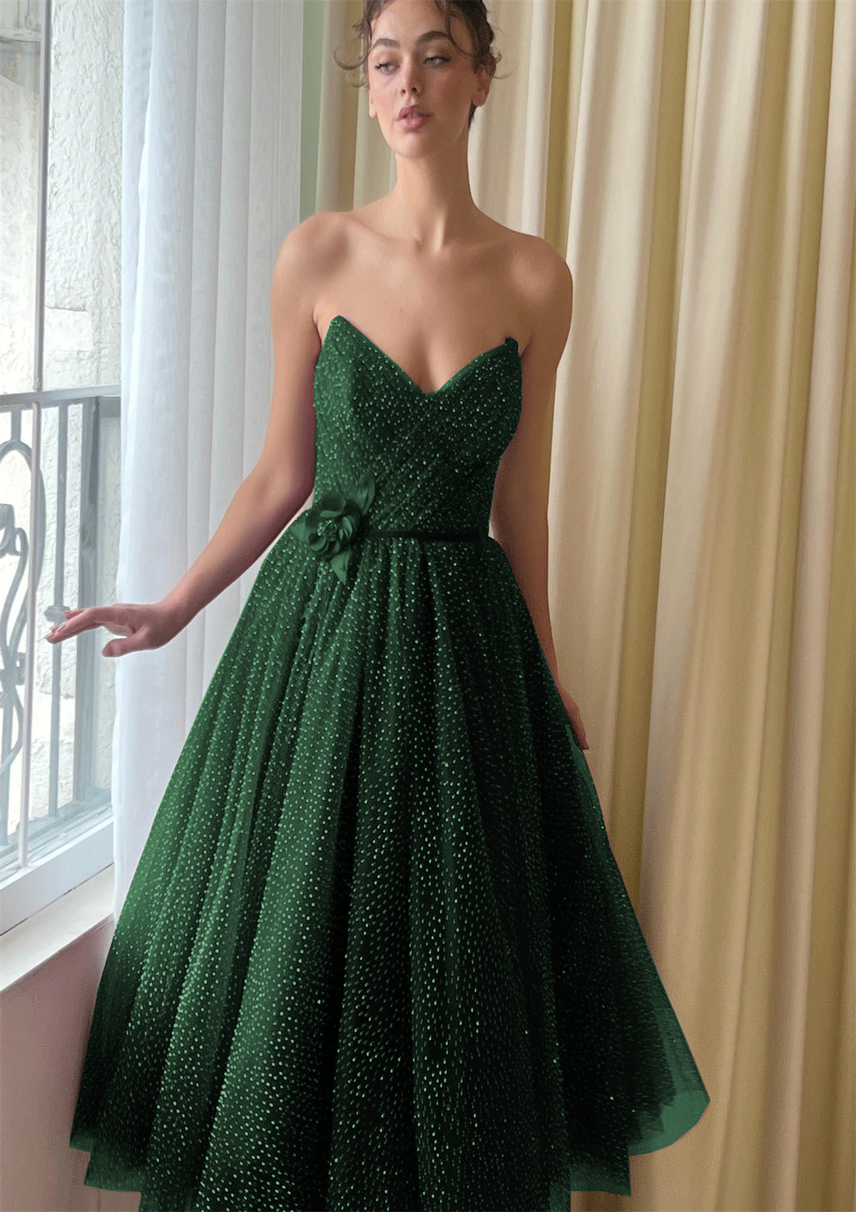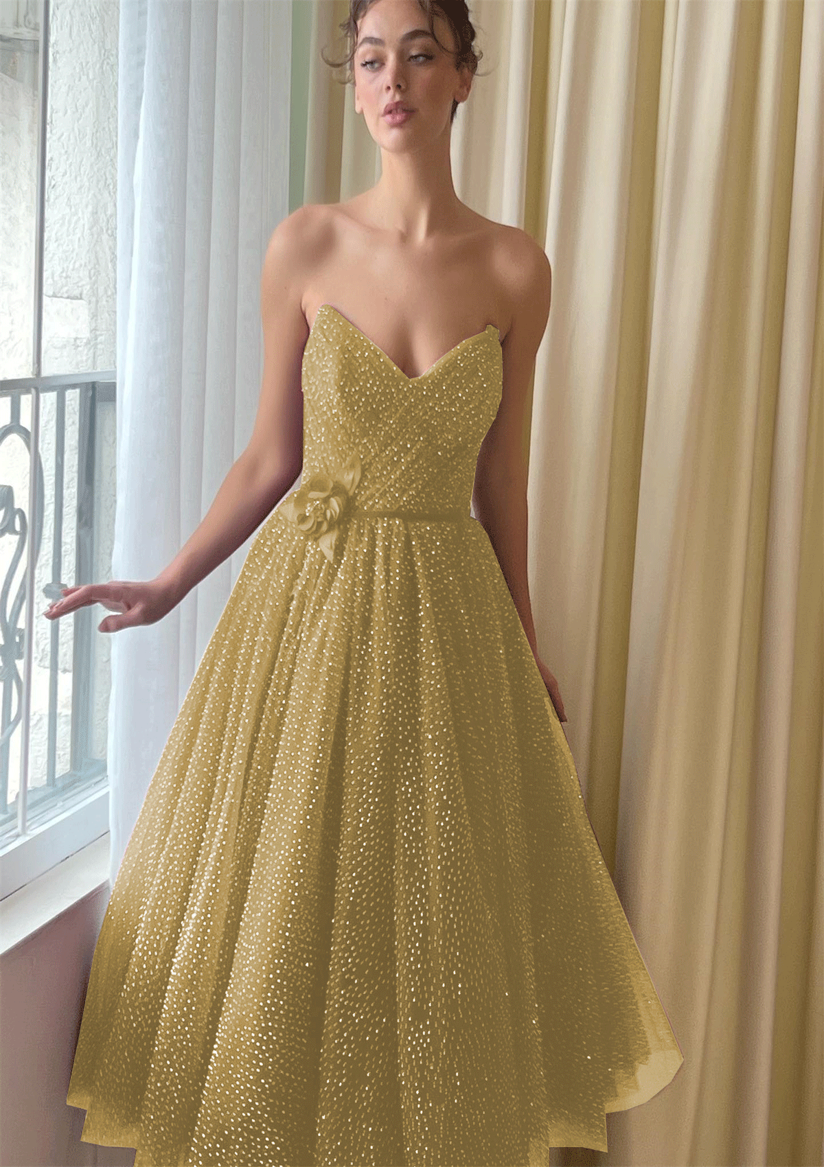 Elegant Sleeveless Midi Sequin Tulle Prom Dress