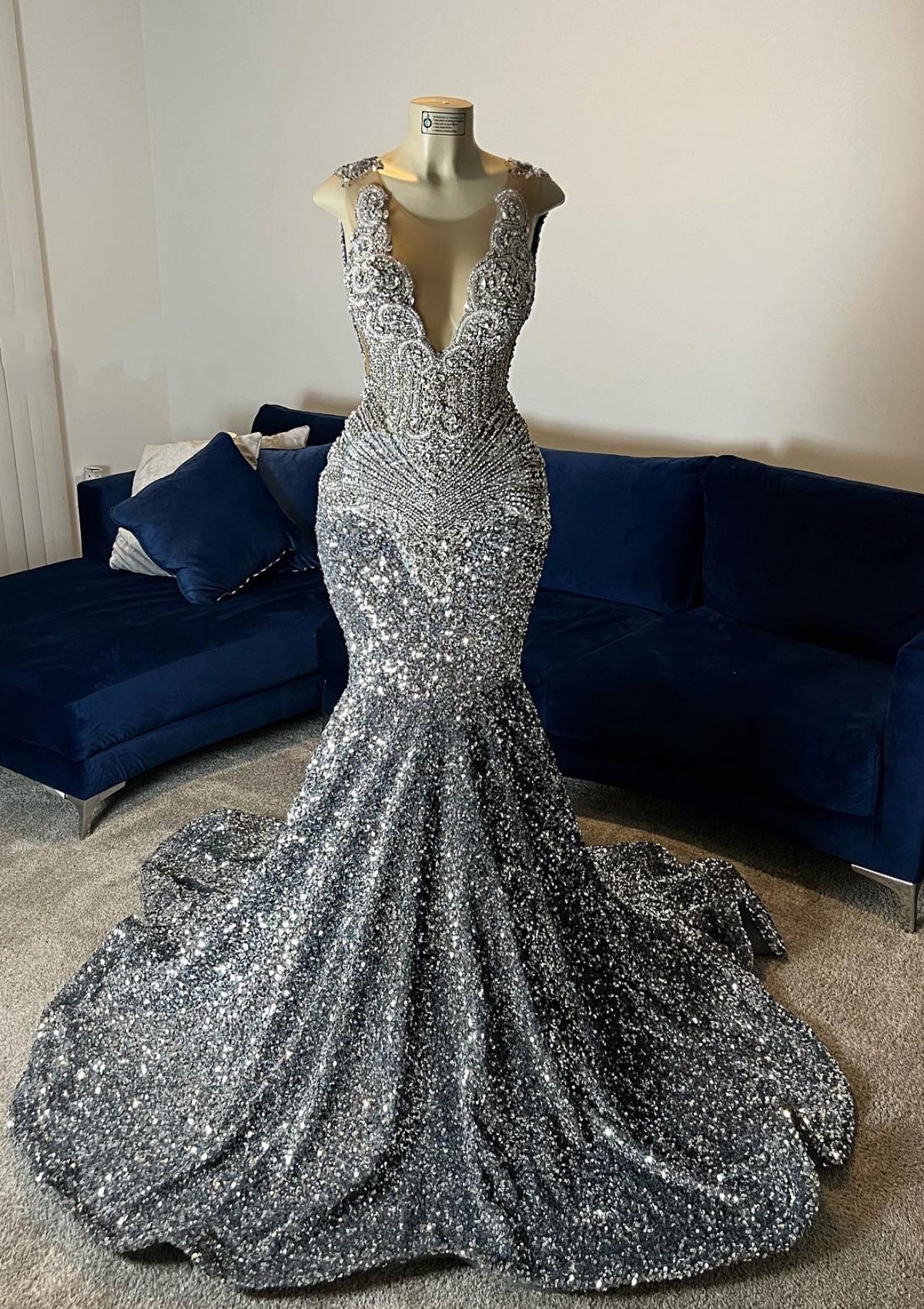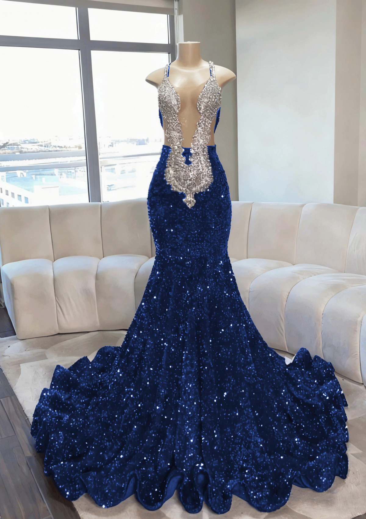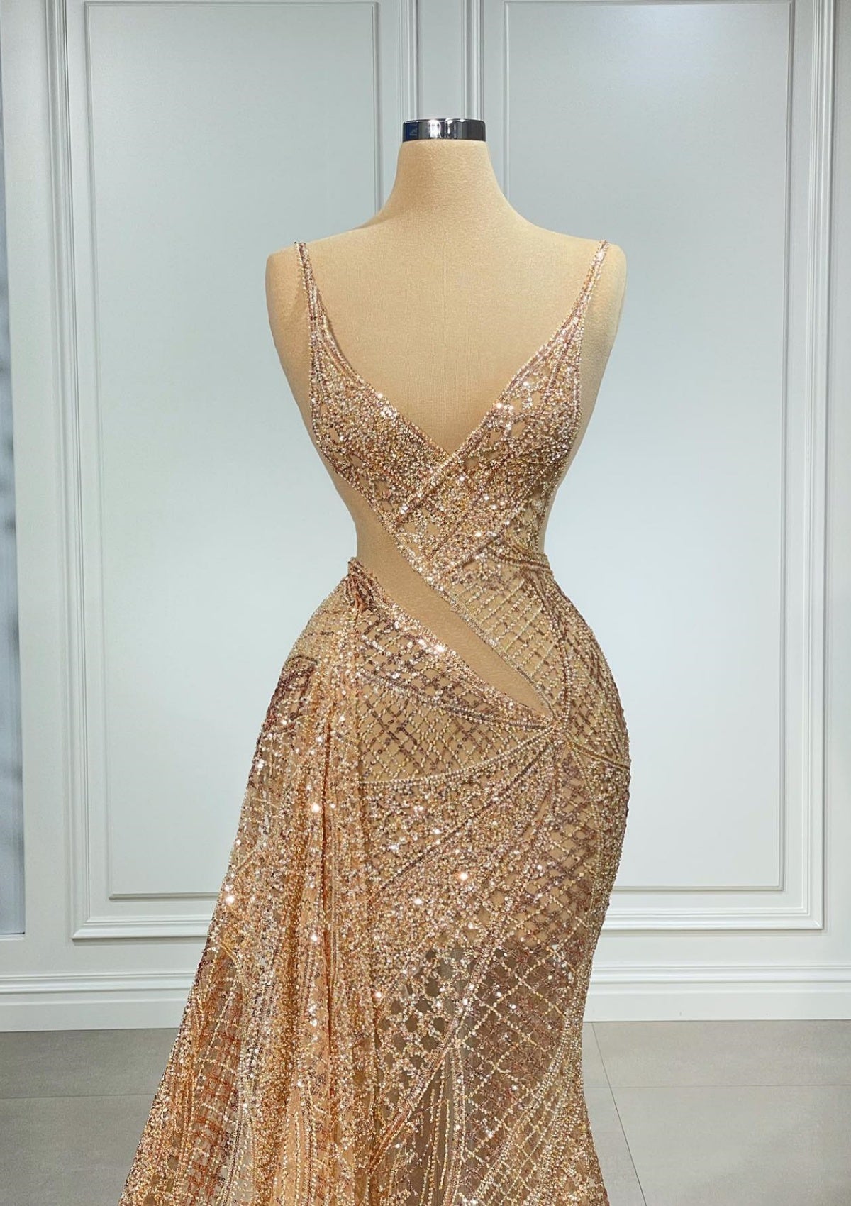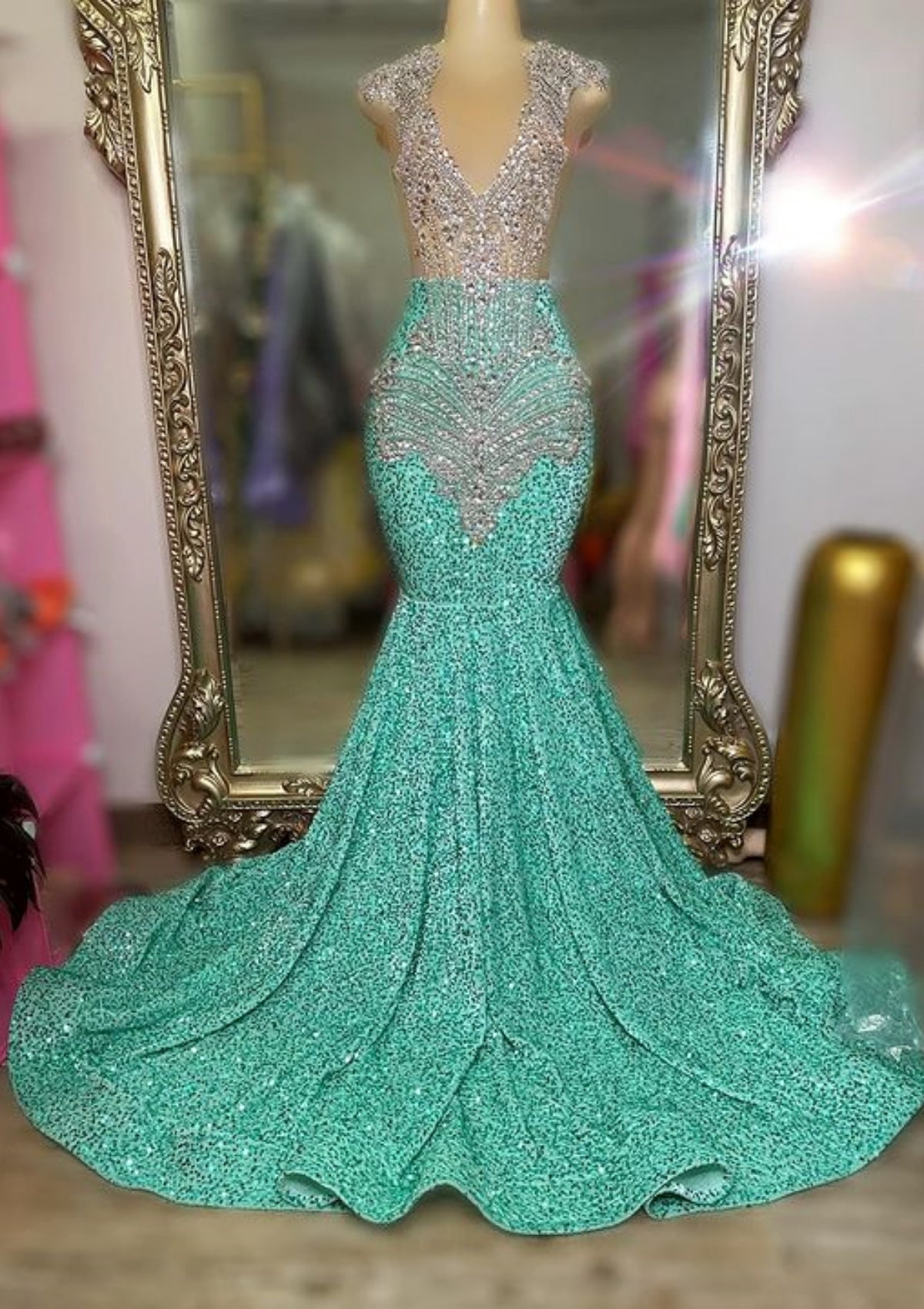 Mermaid Sequin Intricate Rhinestone Deep V-Neck Evening Dress