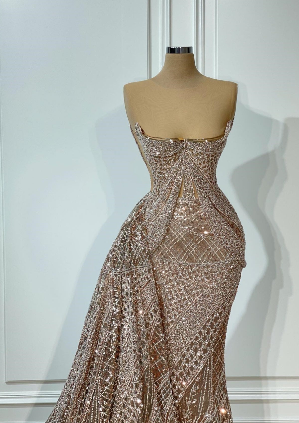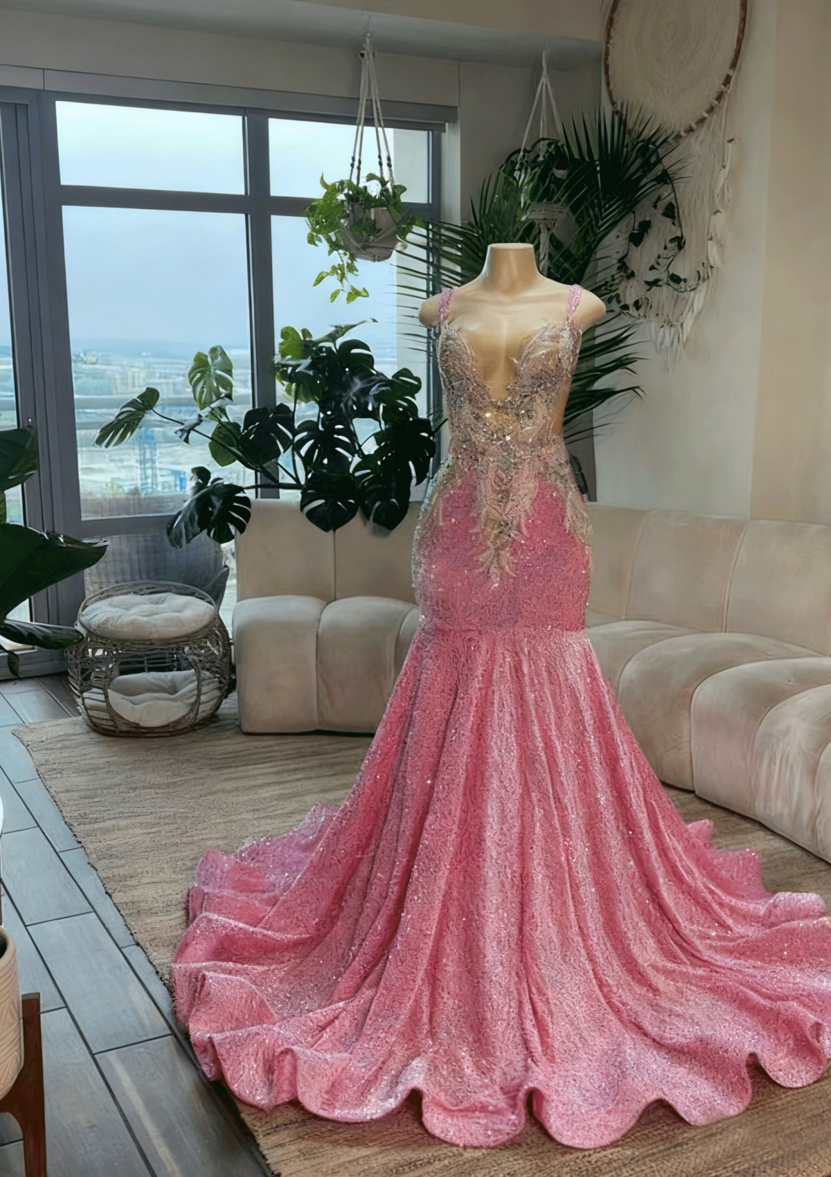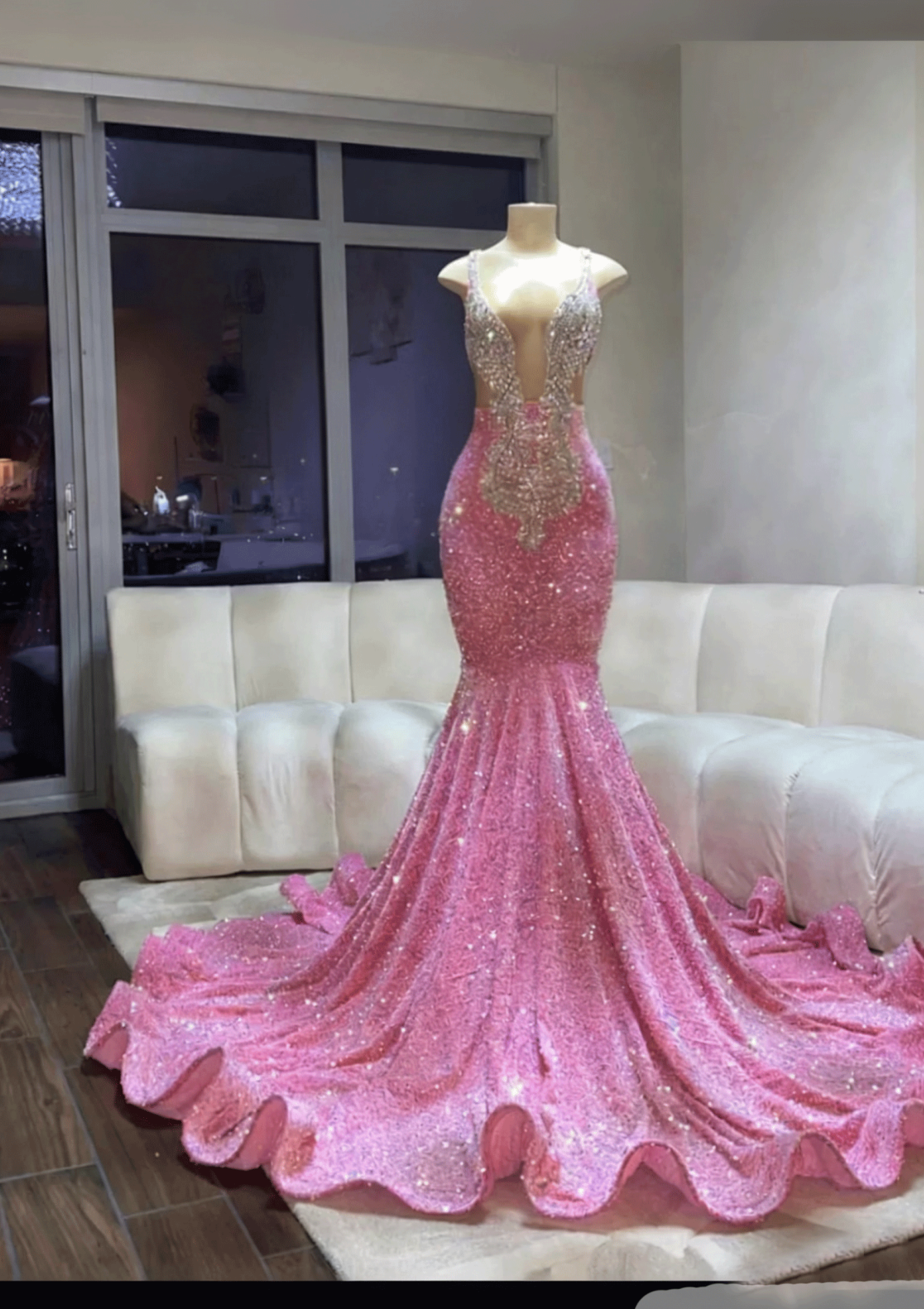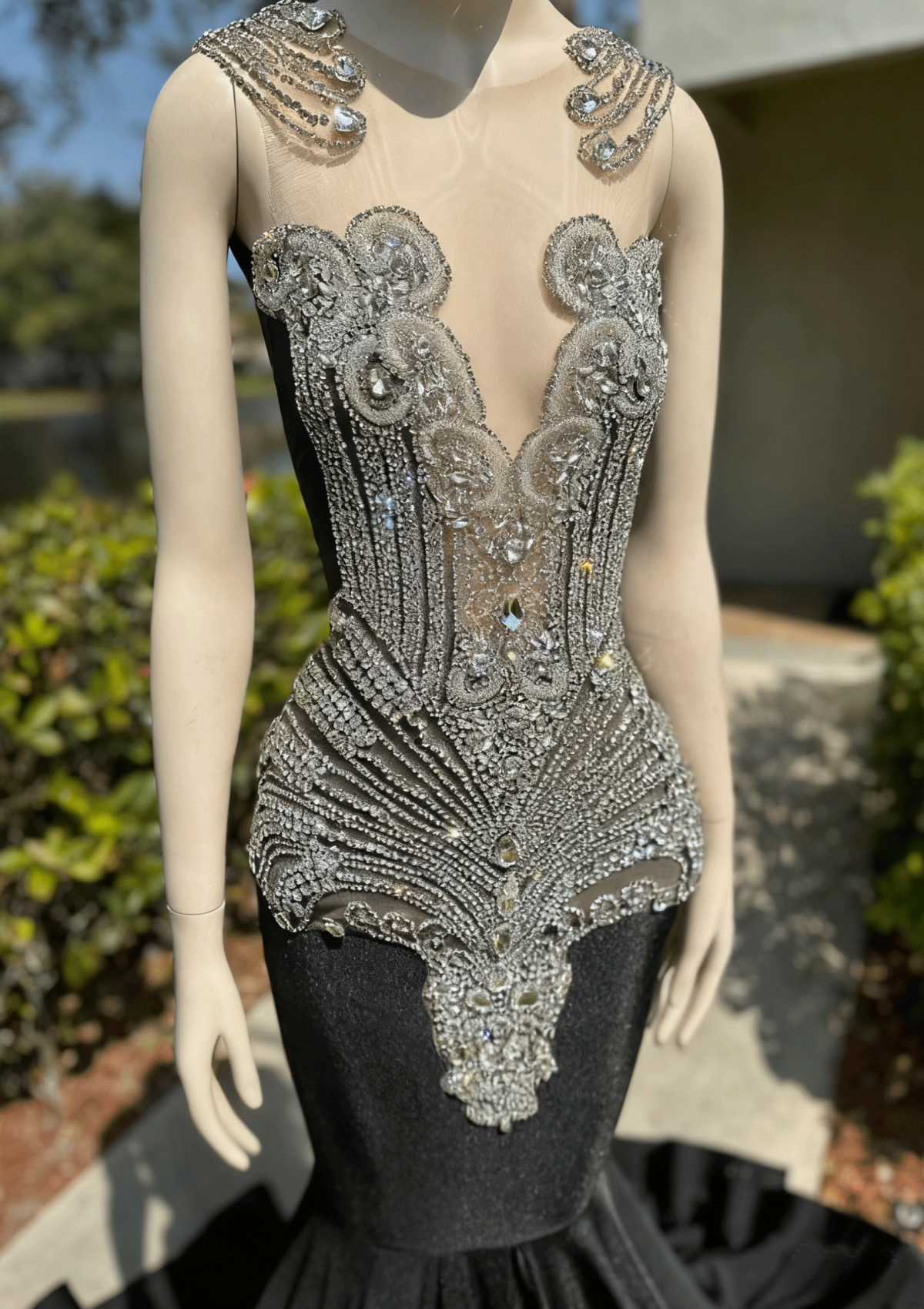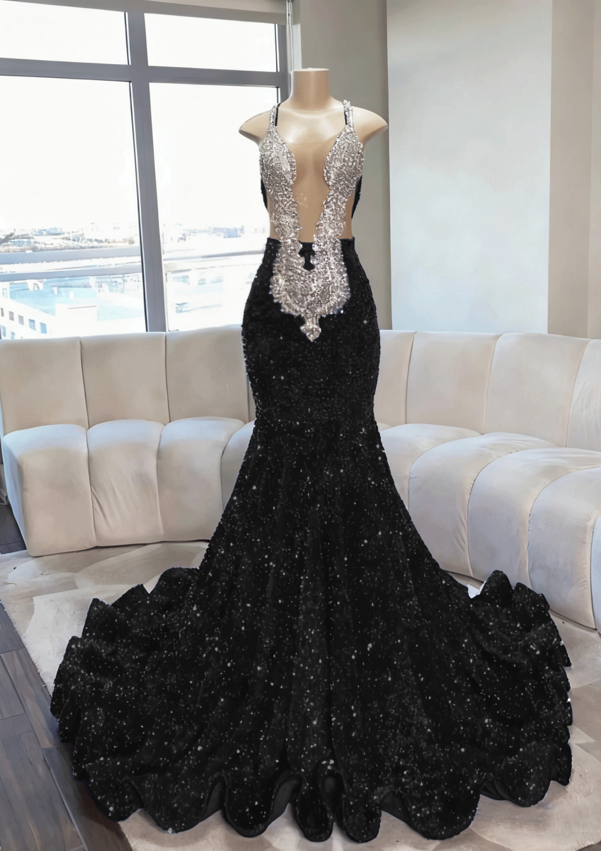 Mermaid Sequin Intricate Rhinestone Deep V-Neck Evening Dress