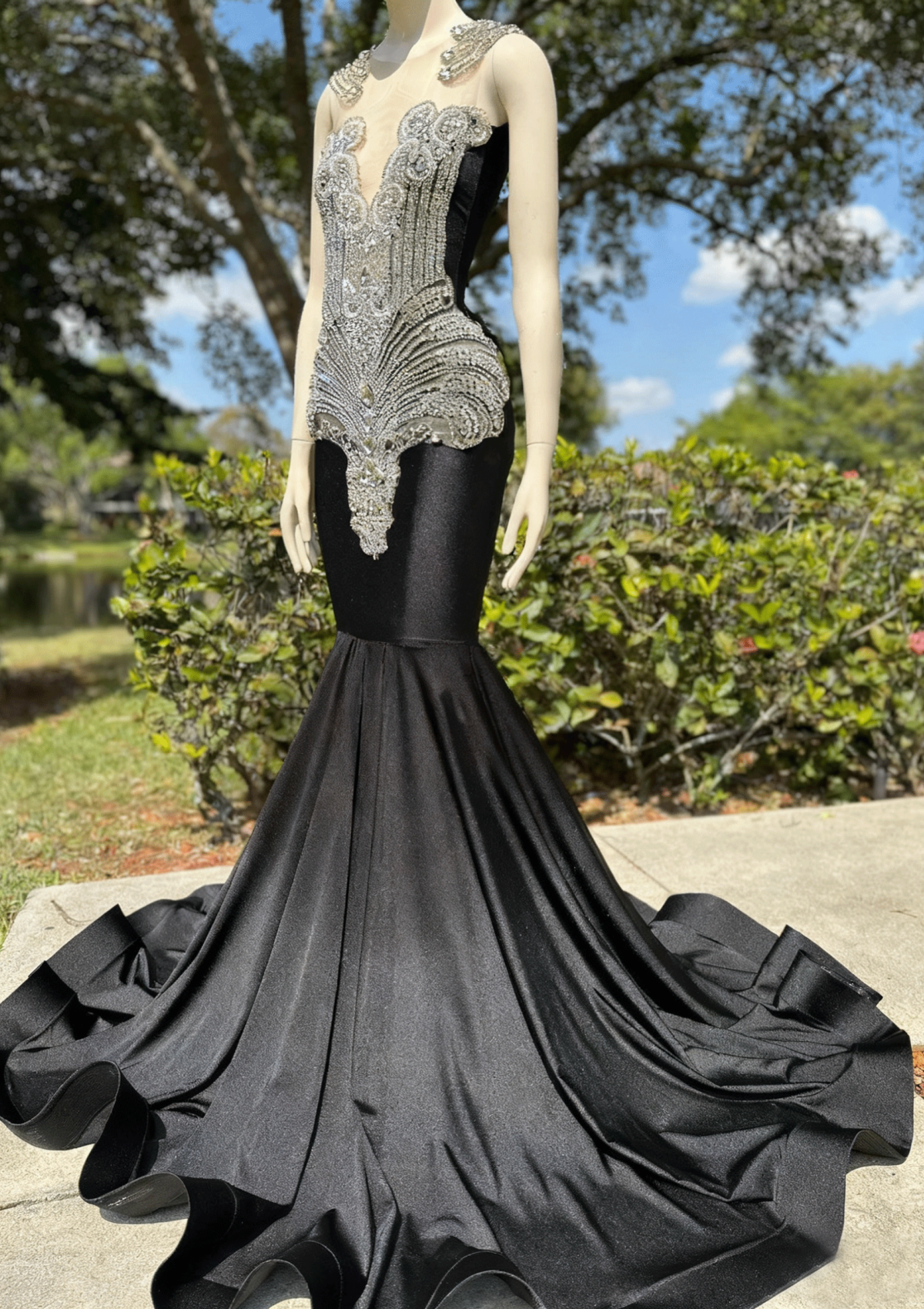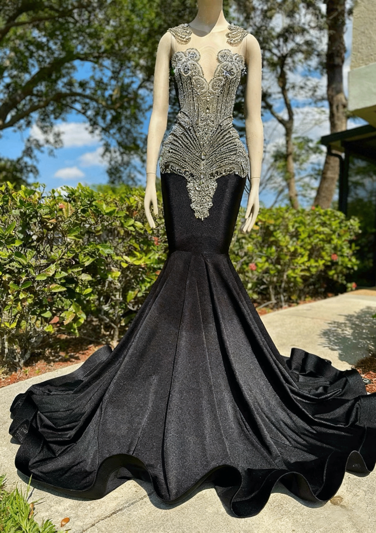 Mermaid Rhinestone Embellished Illusion Neckline Evening Gown