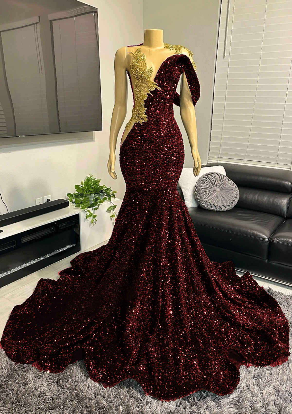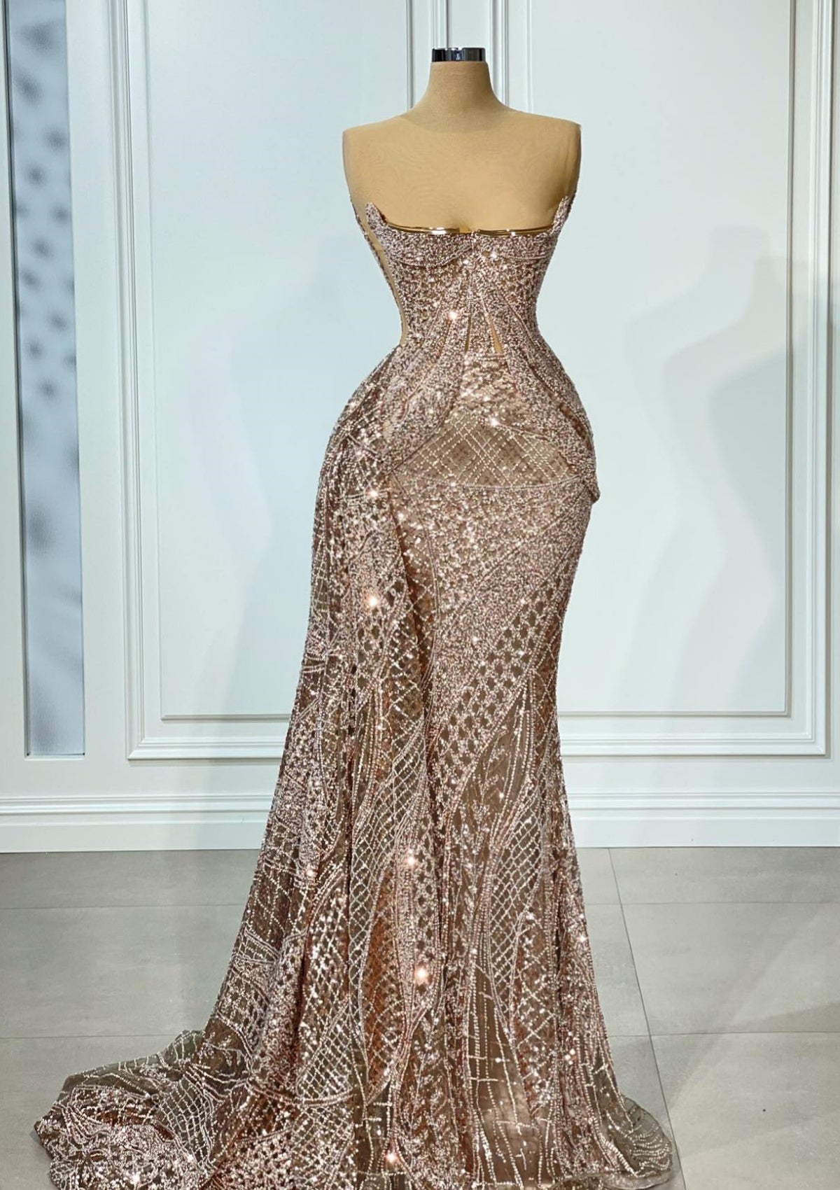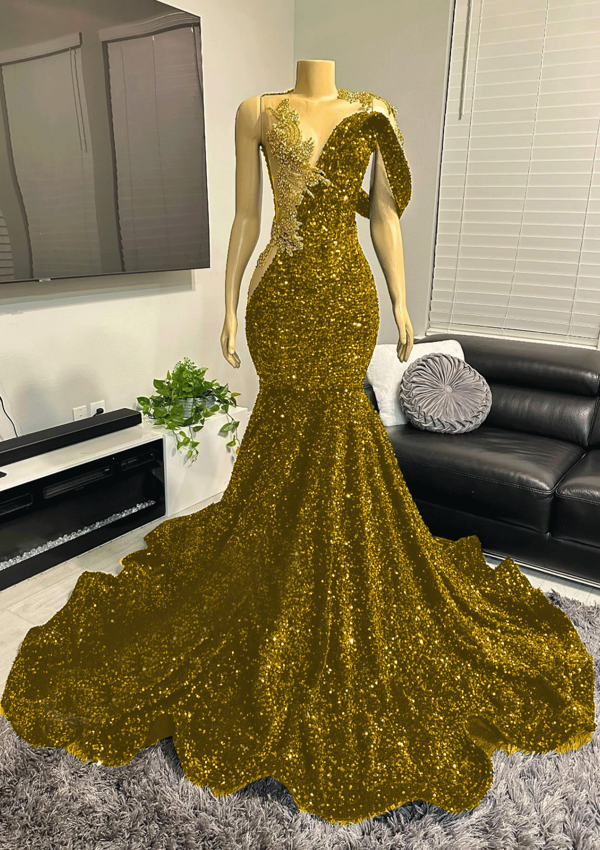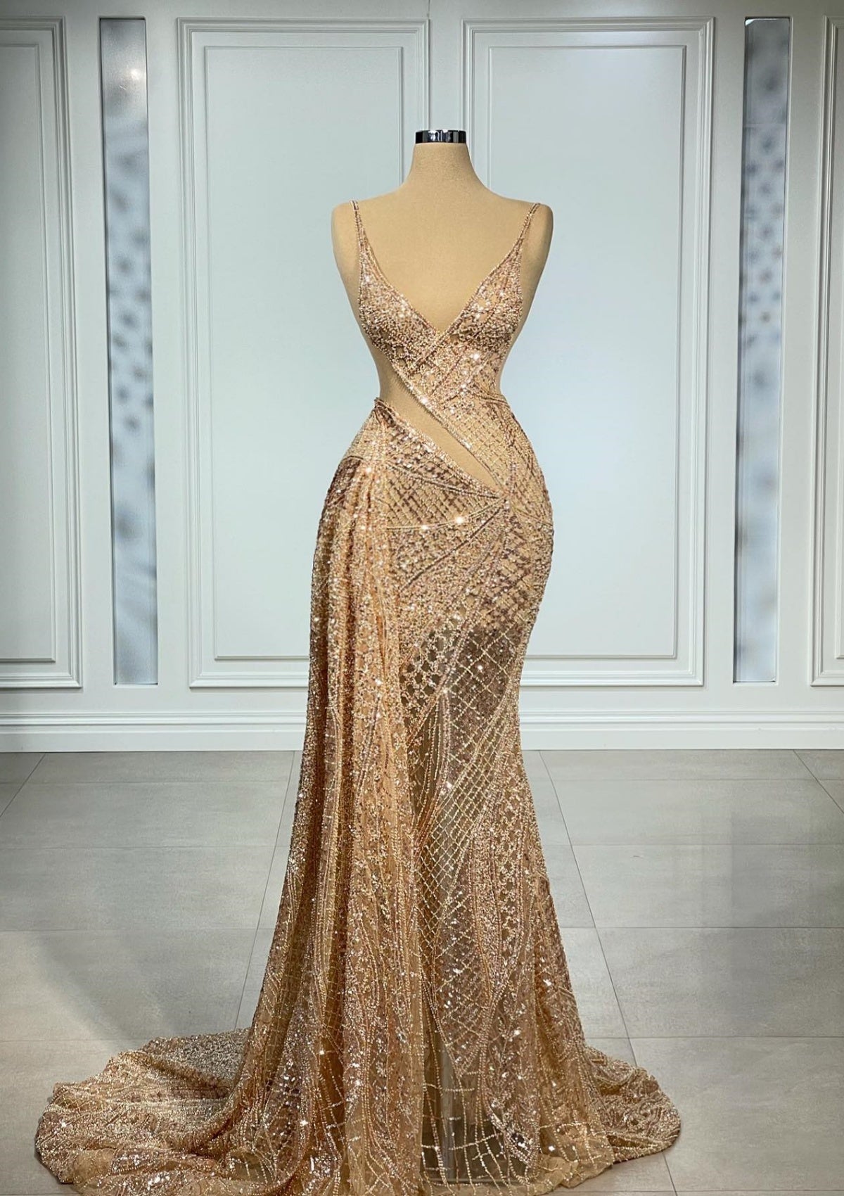 Mermaid Sequined Beaded Deep V-Neck Evening Gown