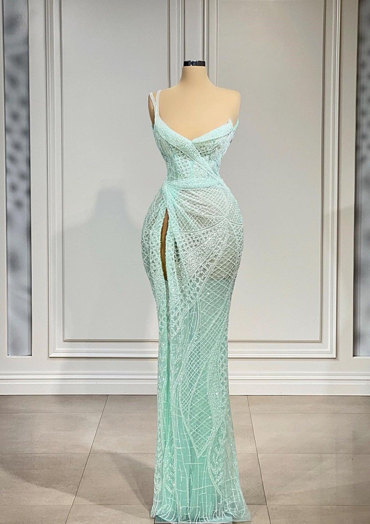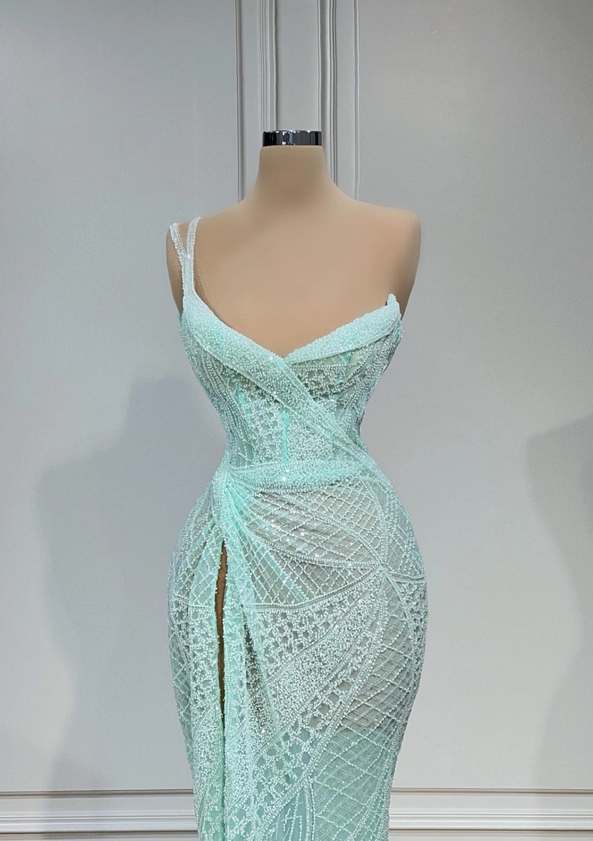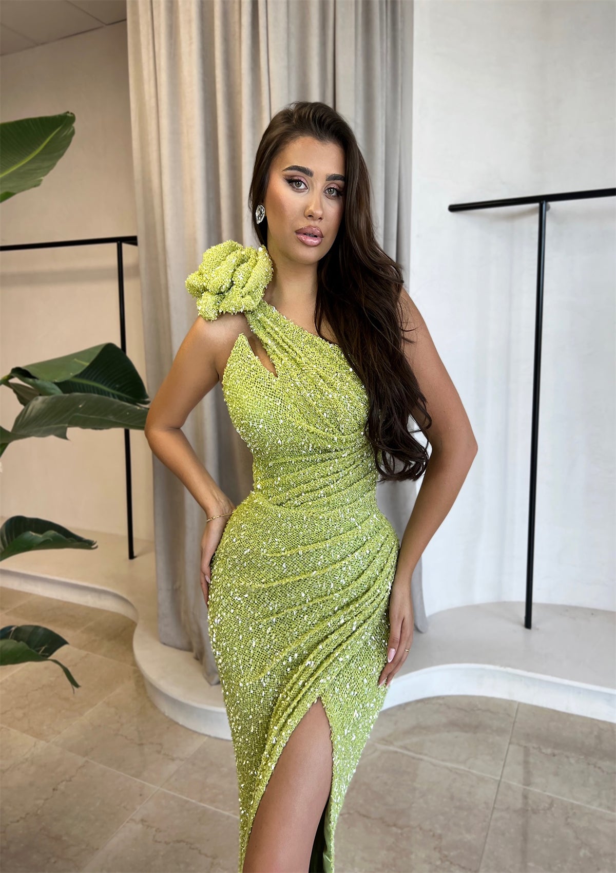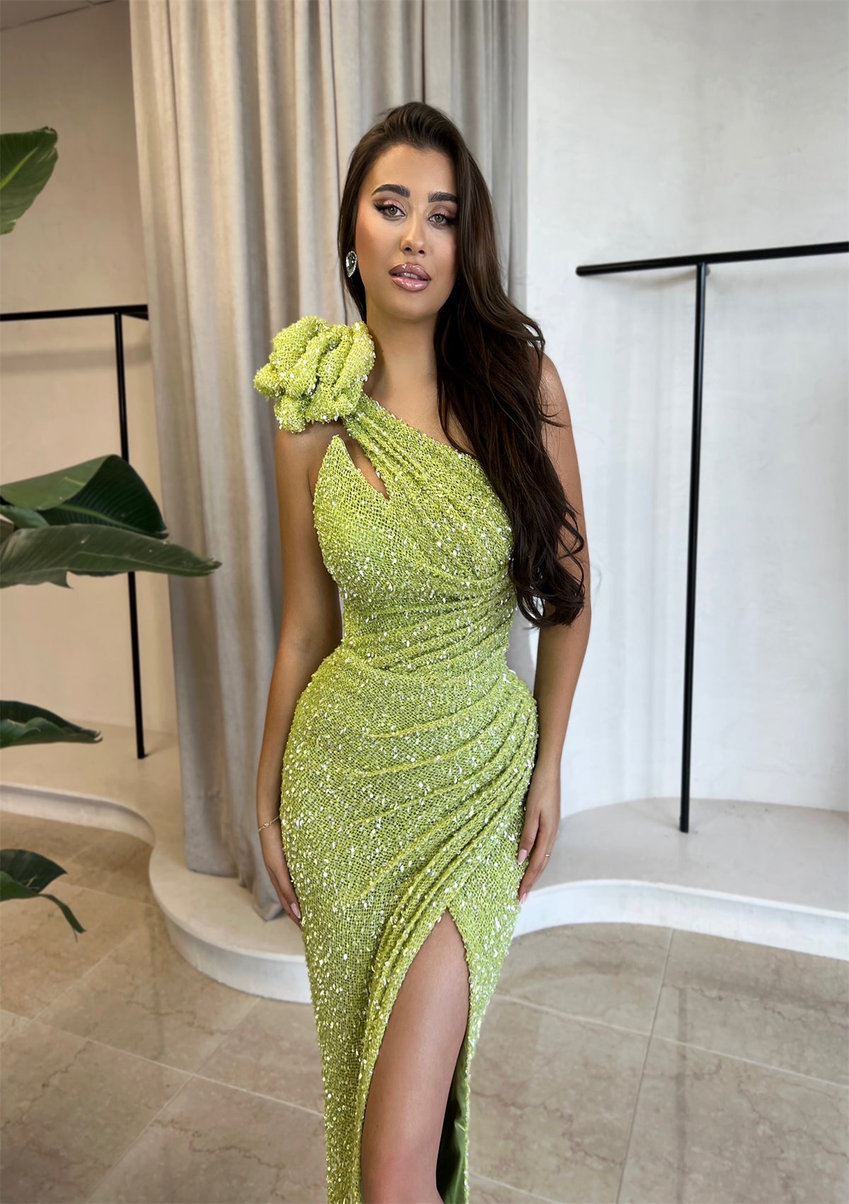 Mermaid One Shoulder Beadings Prom Dress with Slit