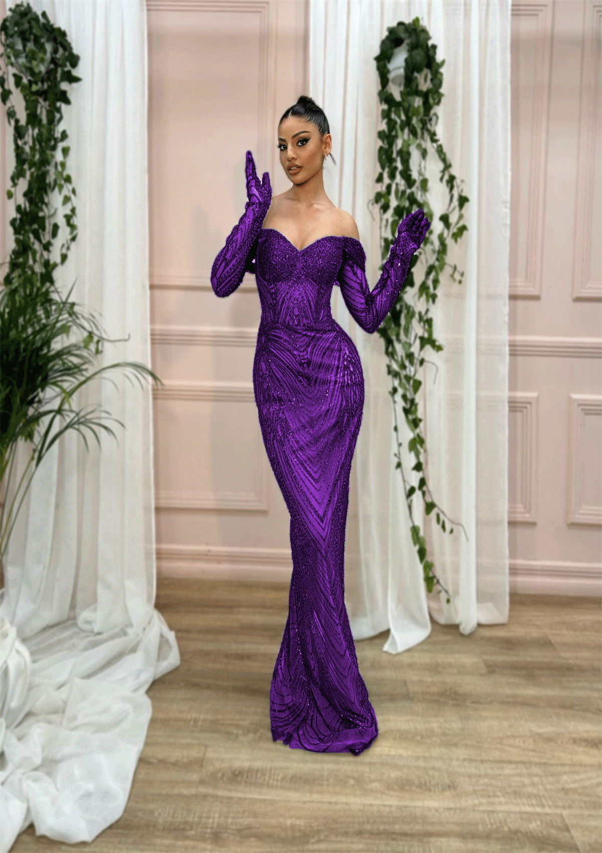 Mermaid One Draped Off Shoulder Sequin Appliques Evening Dress