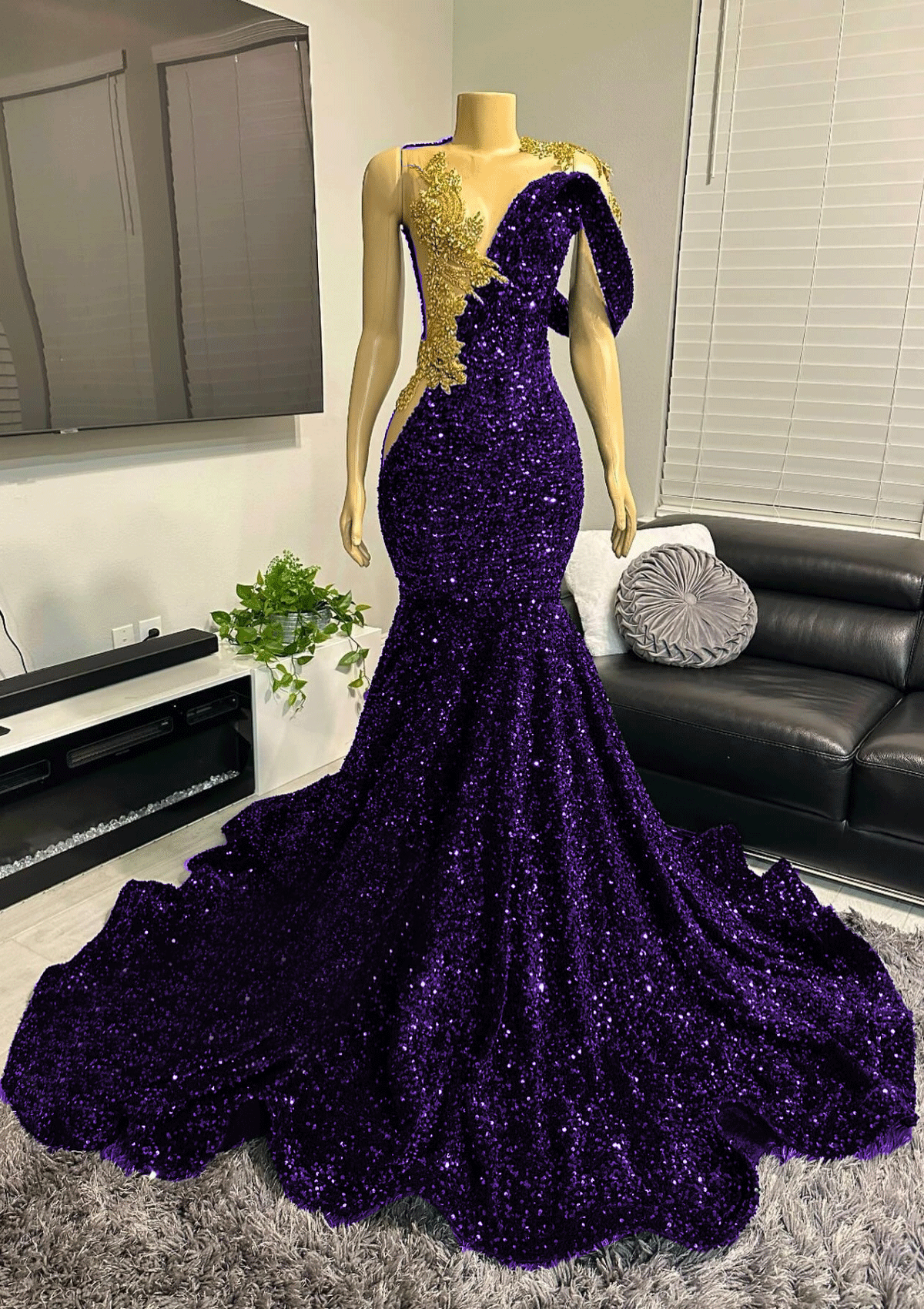 Mermaid Sequined Cutout Illusion Neckline Evening Gown