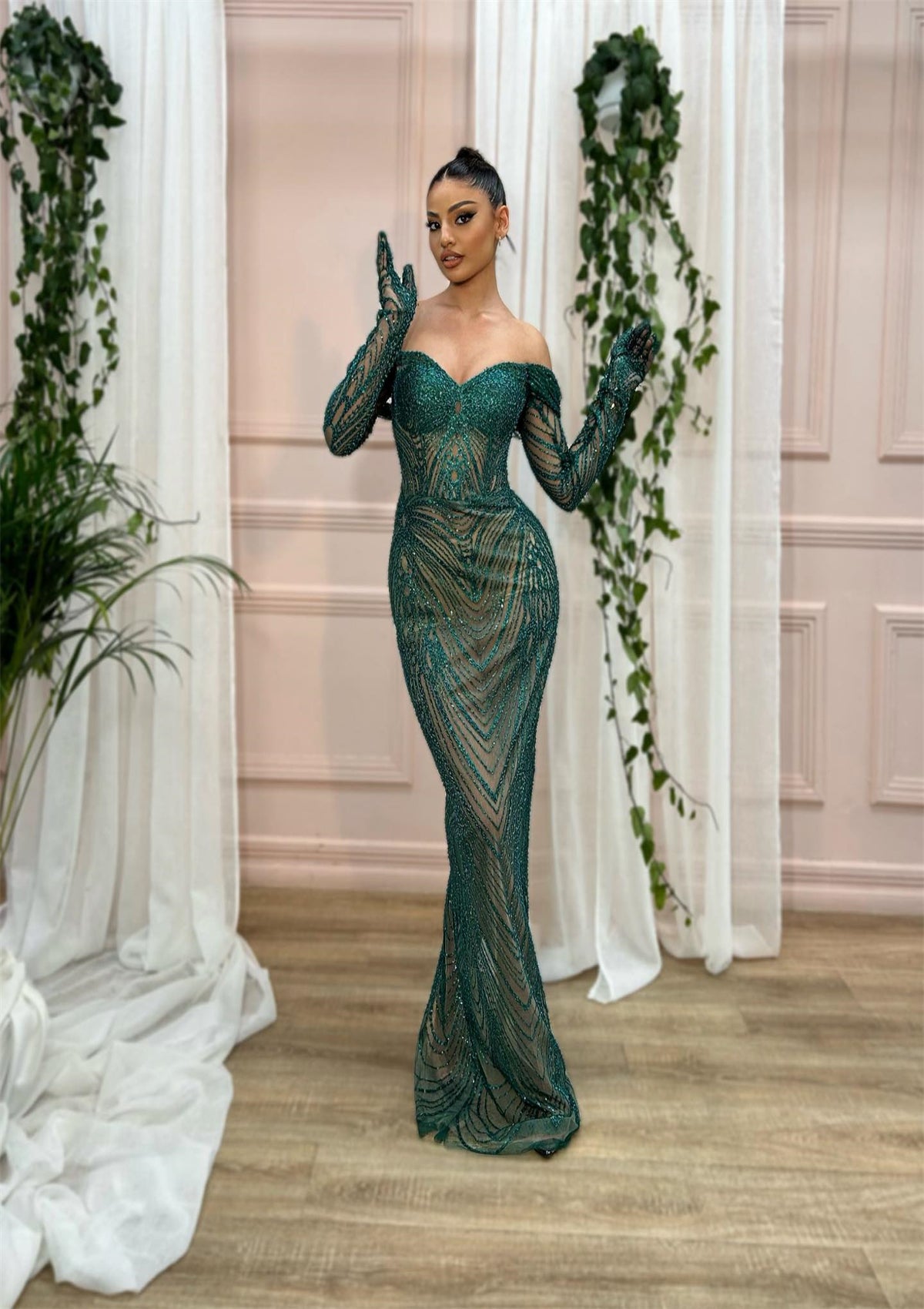 Mermaid Long Sleeves Sweetheart Illusion Evening Dress