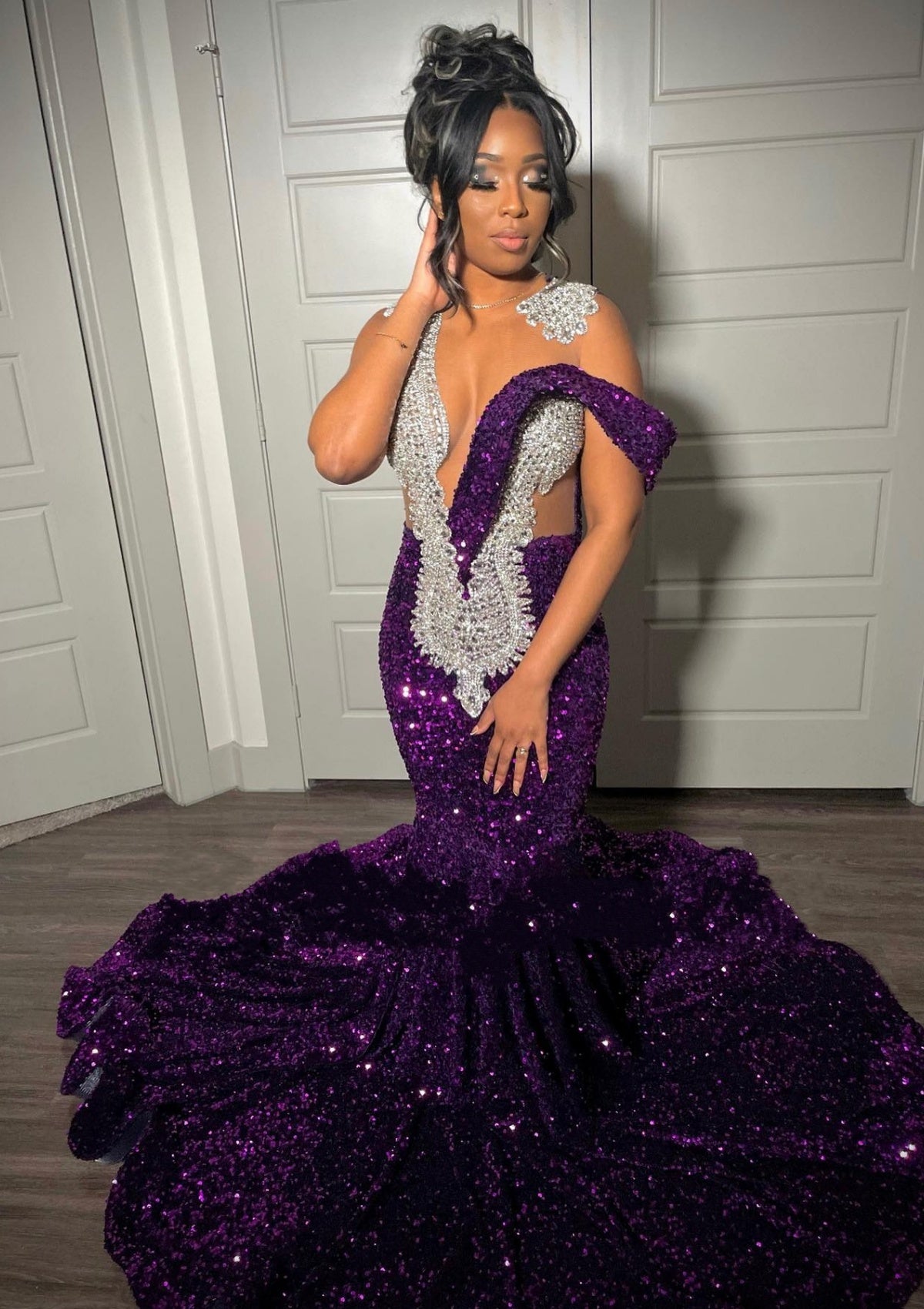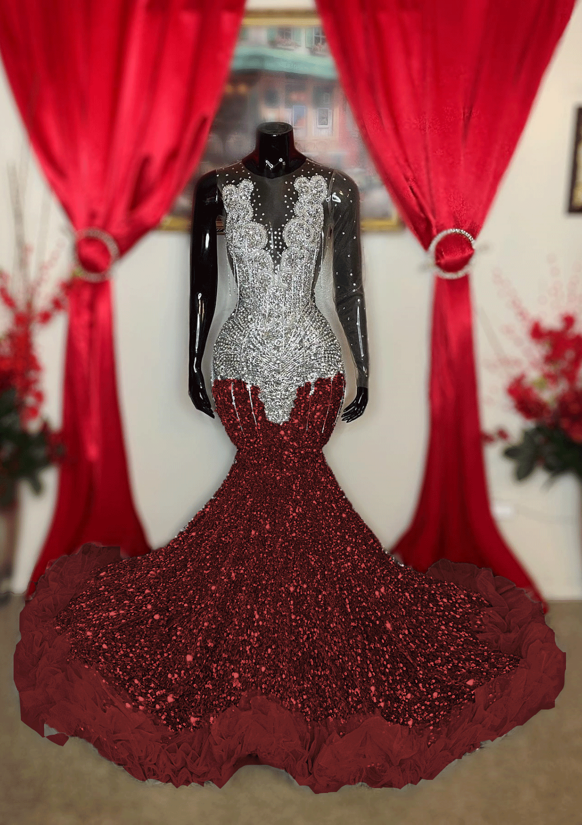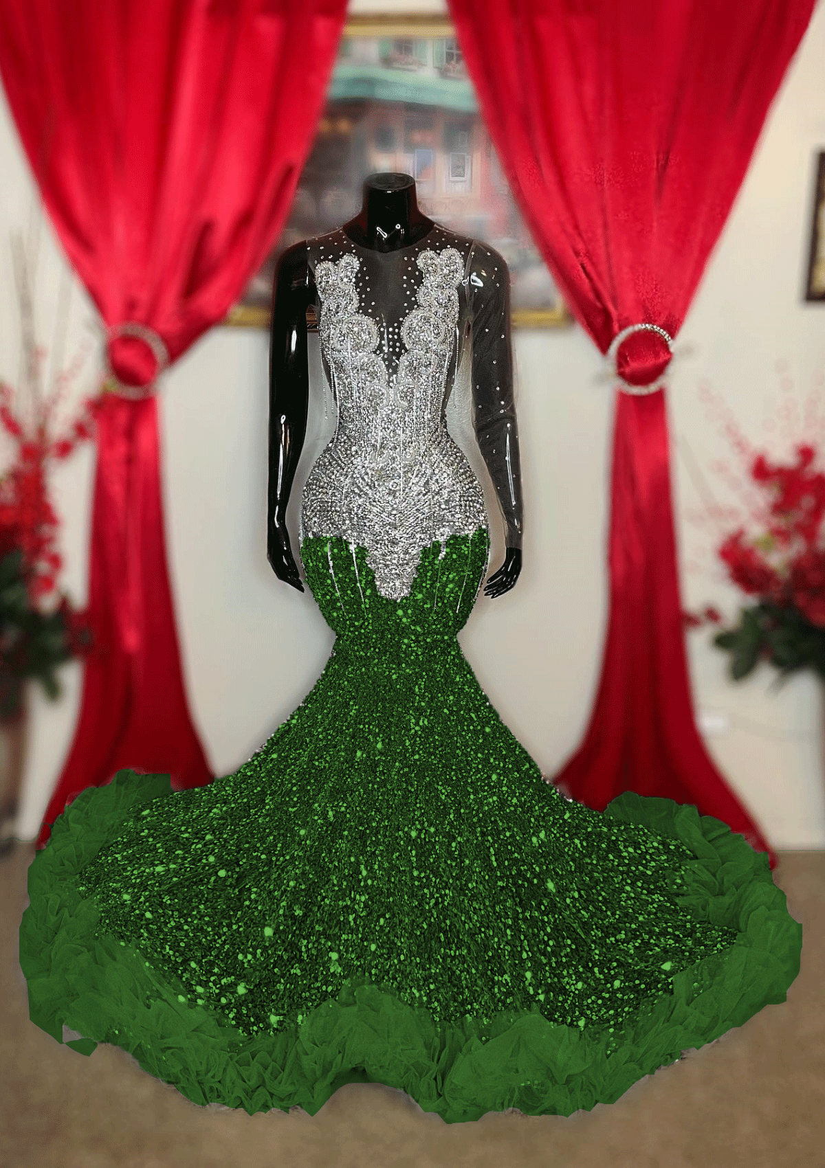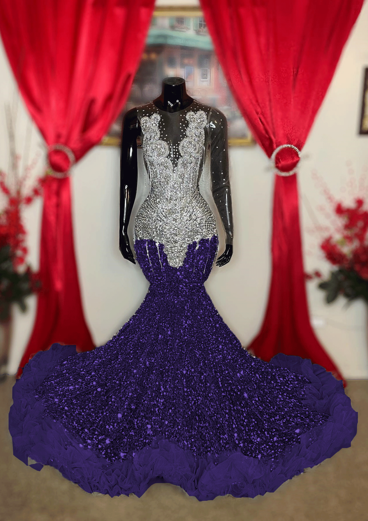 Sex Beaded Cutout Prom Dress with Flowing Ruffled Train