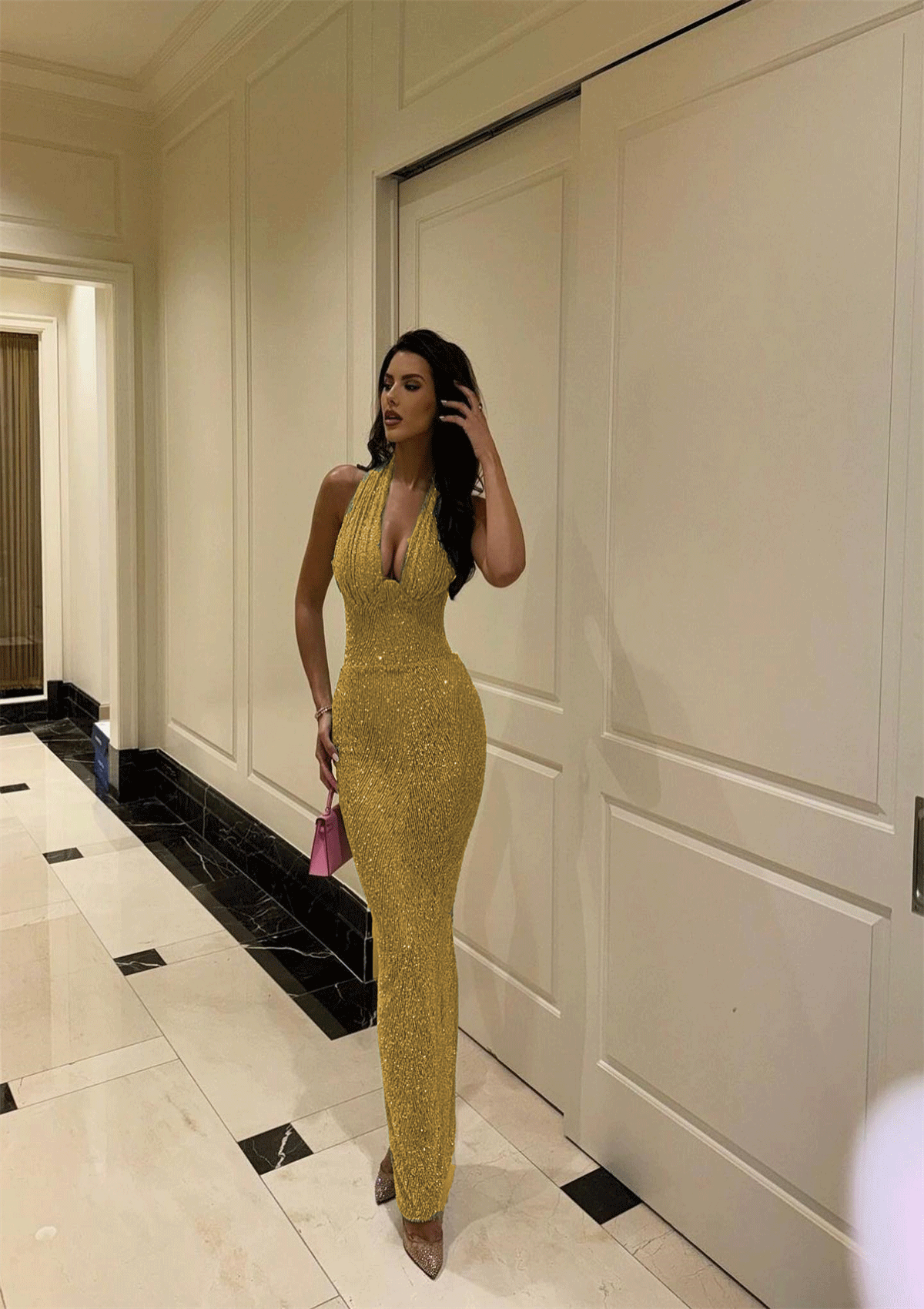 Sex Halter Plunging Neck Tight Long Evening Dress