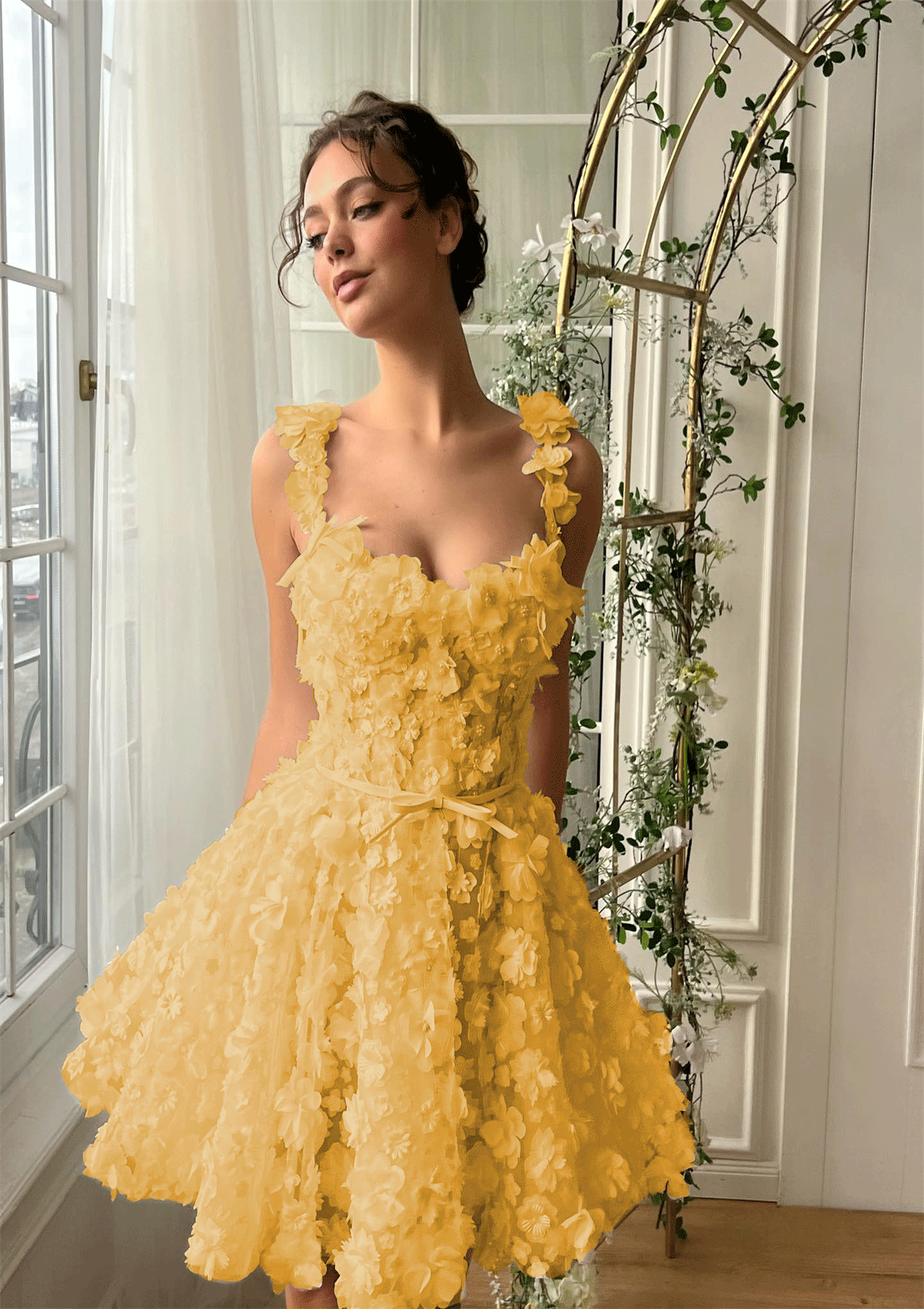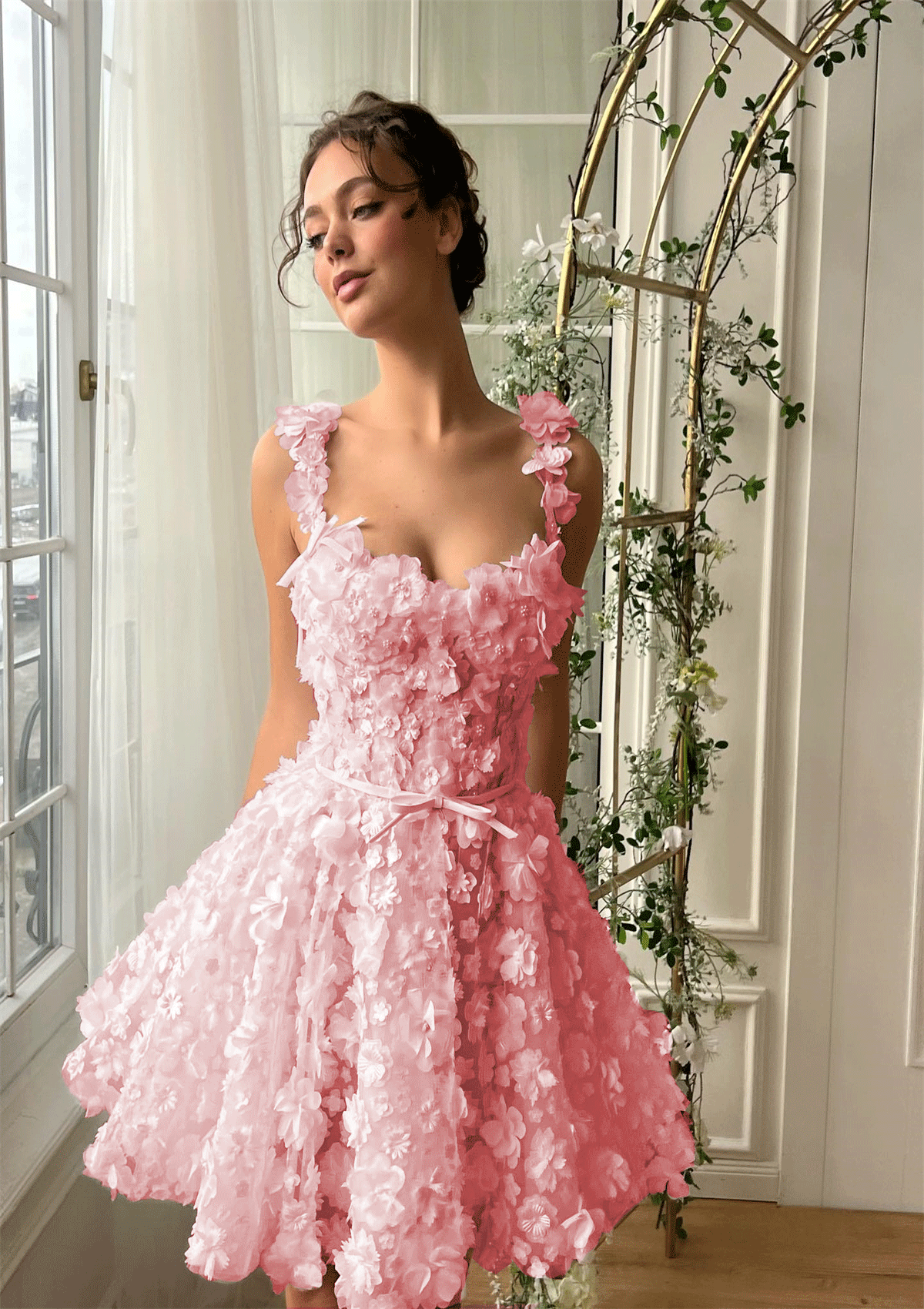 Sweet Spaghetti Strap 3D Flowers Prom Dress with Pearls