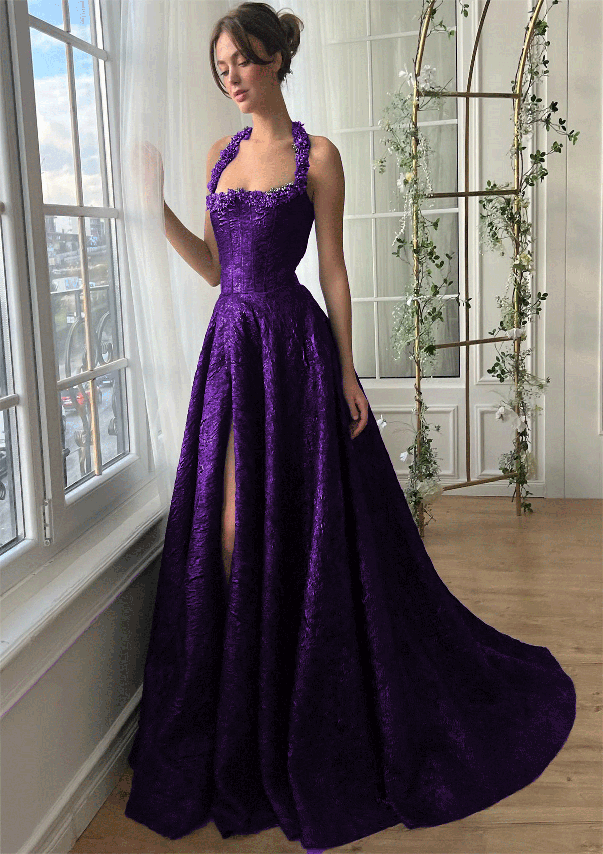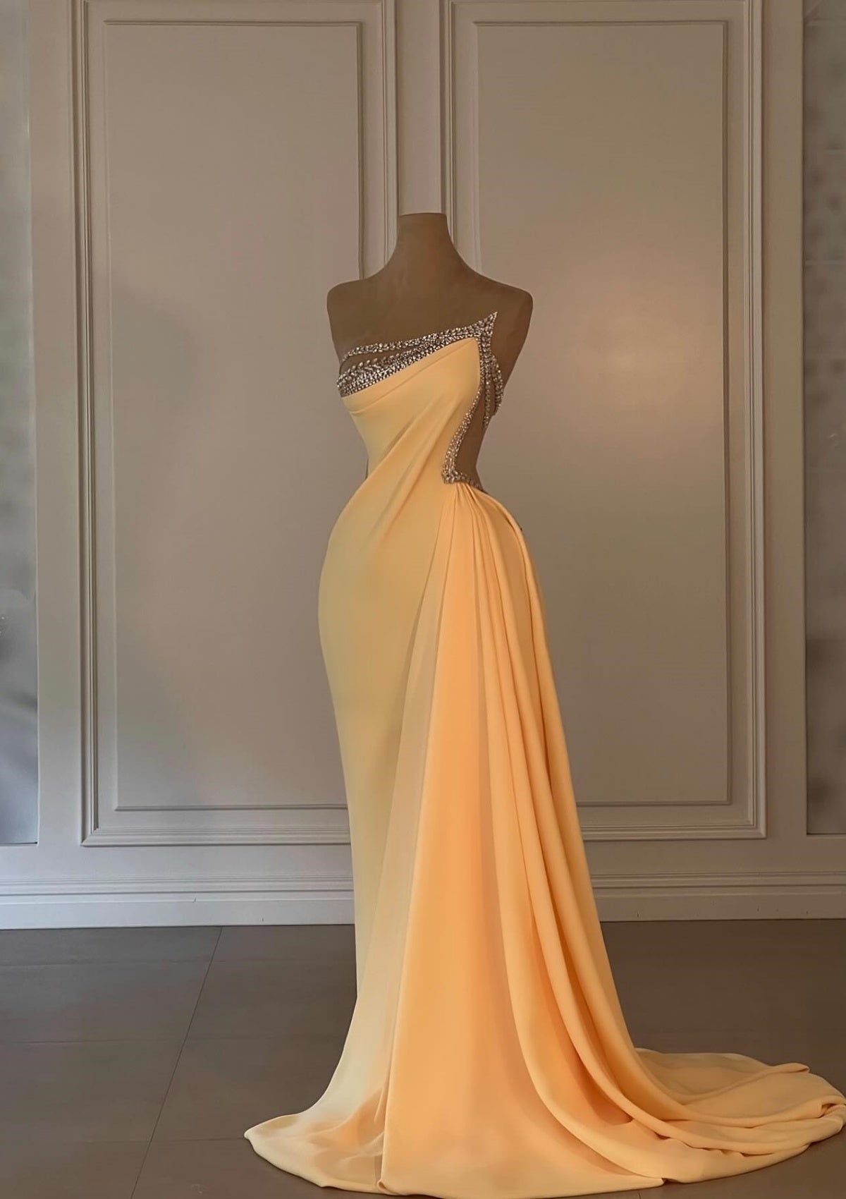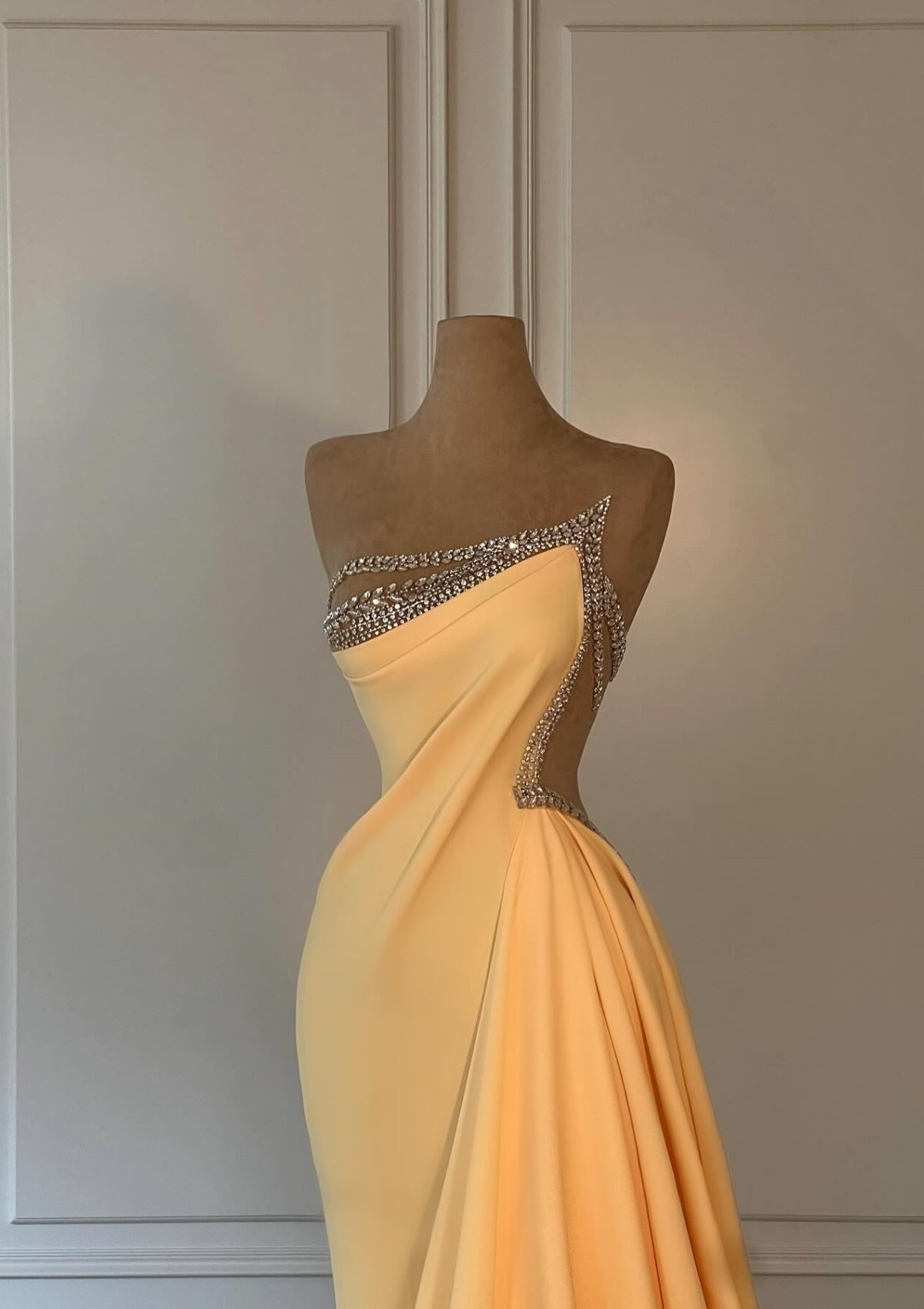 Captivating Asymmetrical Neck Long Prom Dress with Train