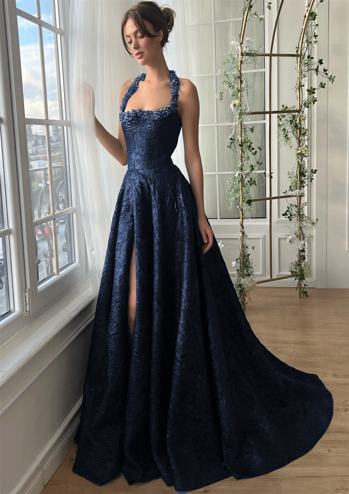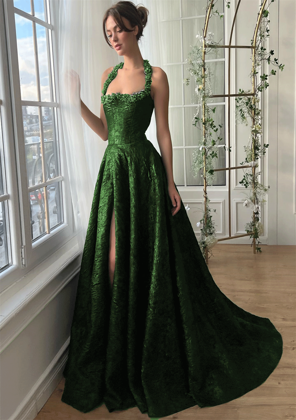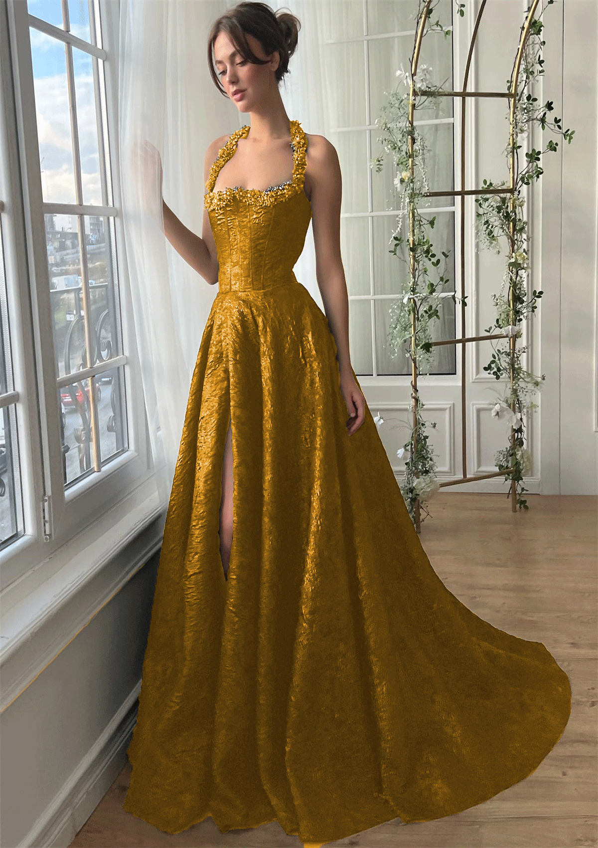 Captivating Asymmetrical Neck Long Prom Dress with Train