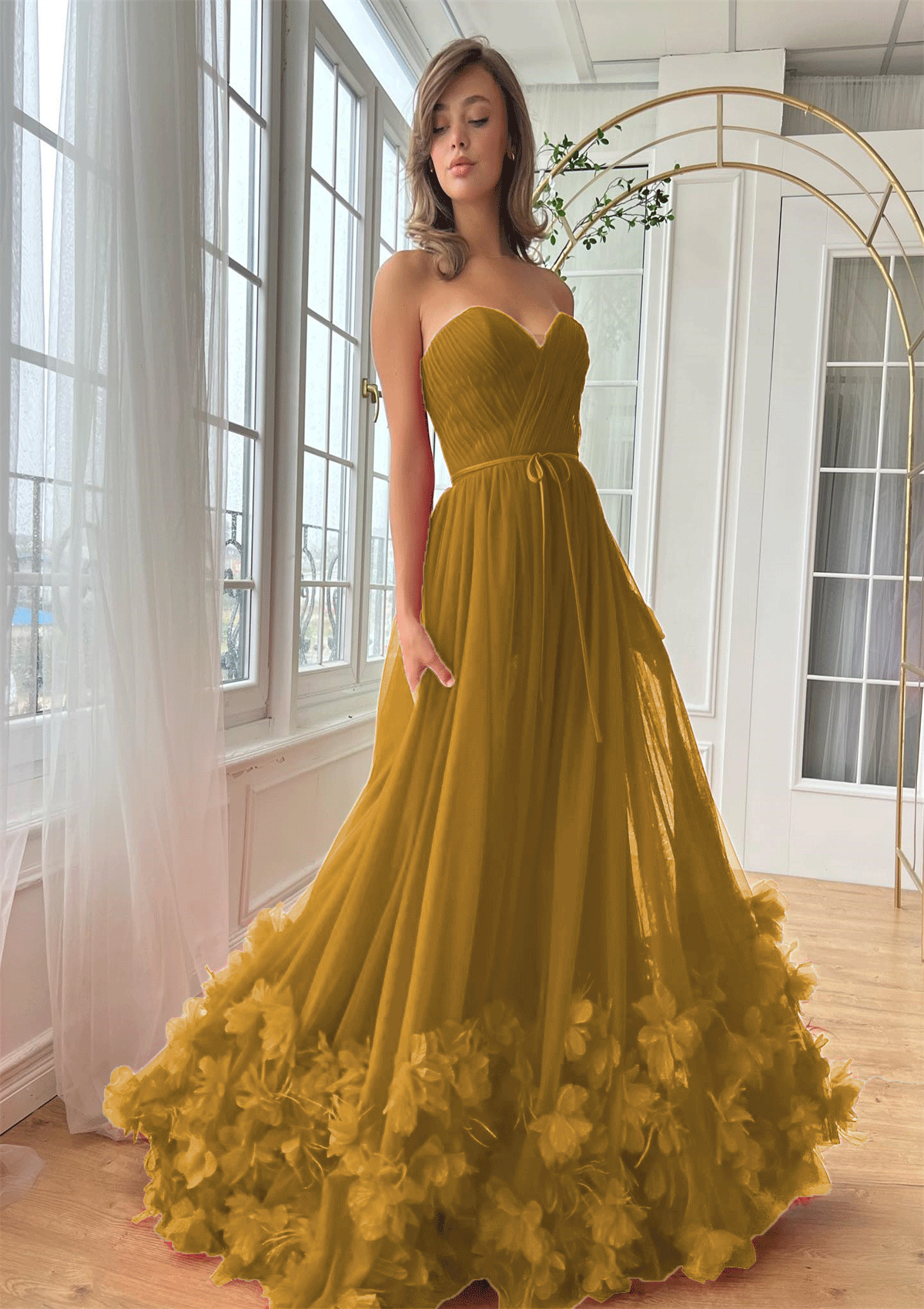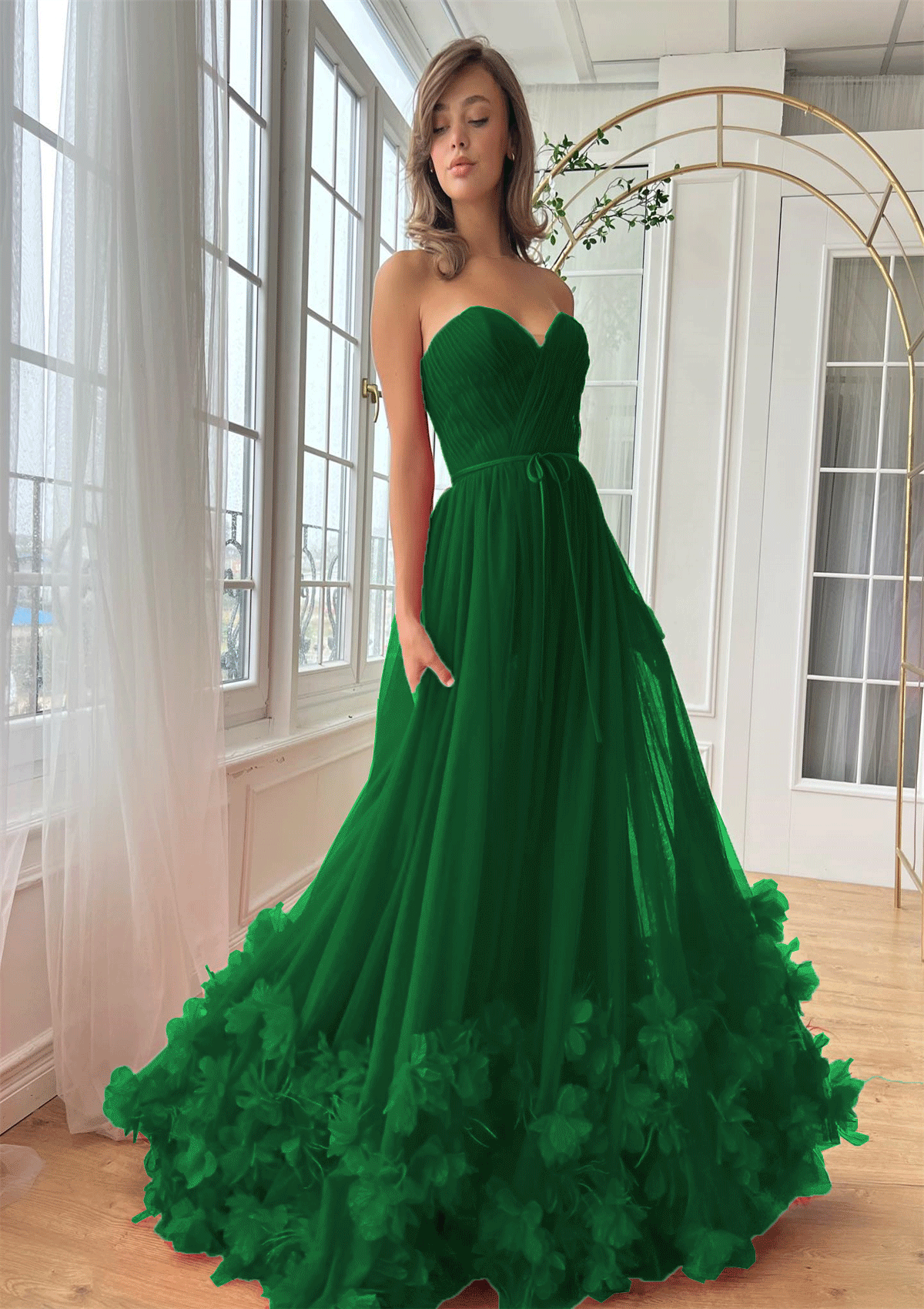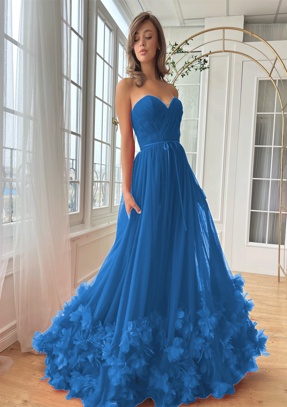 Captivating 3D Flowers Appliques Tulle Prom Dress with Pearls