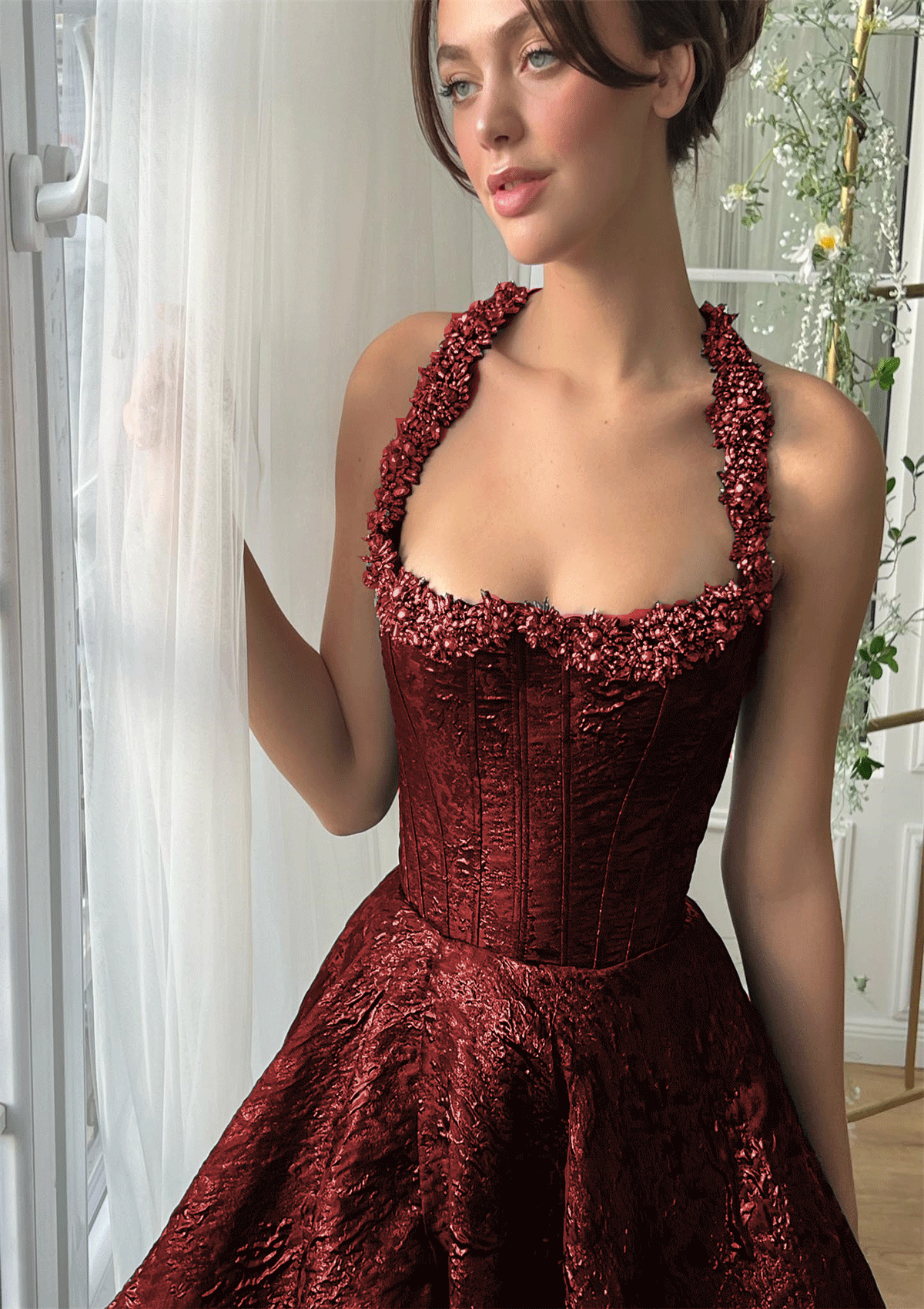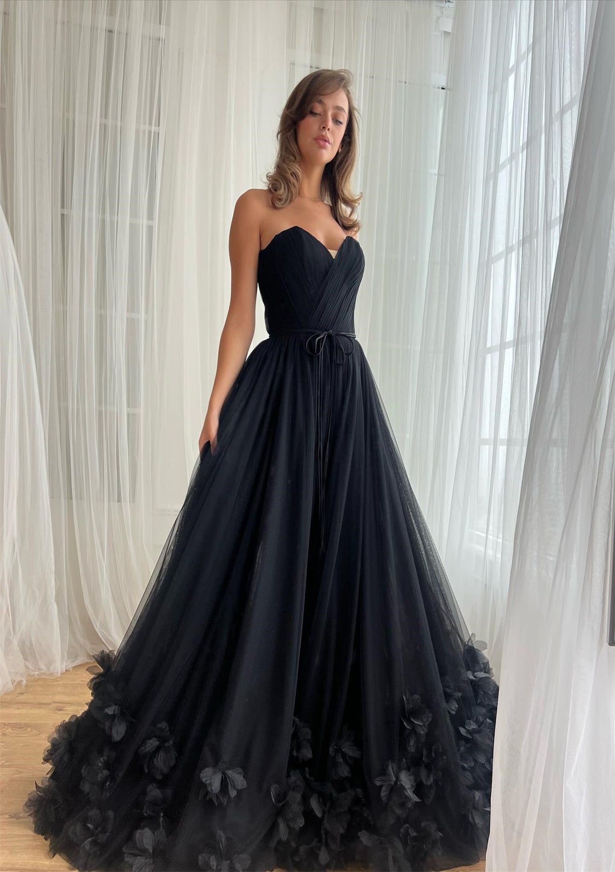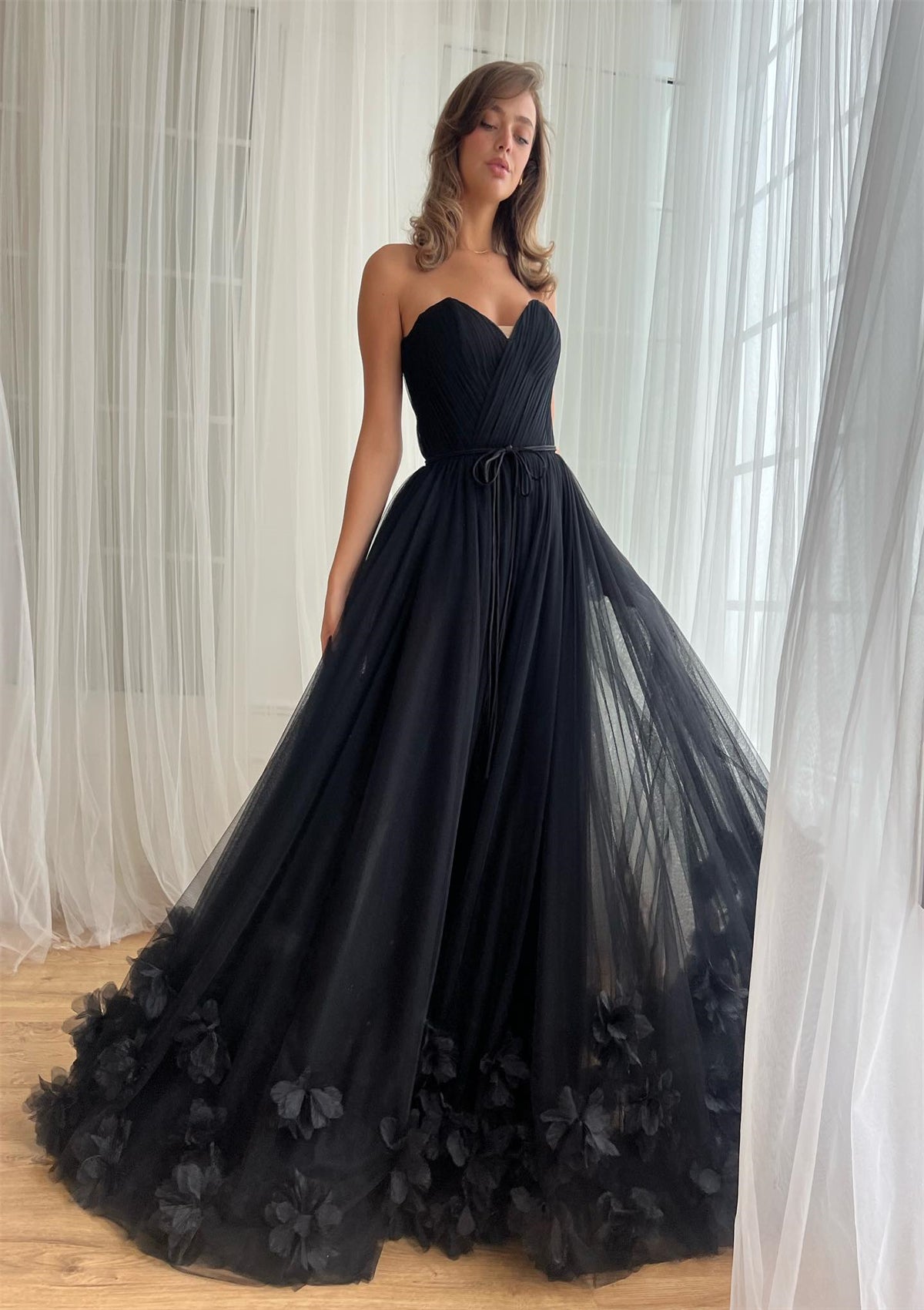 Captivating 3D Flowers Appliques Tulle Prom Dress with Pearls