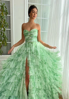 A Line Sweetheart Layered Printed Prom Dress with Slit