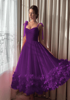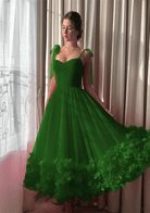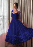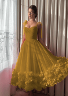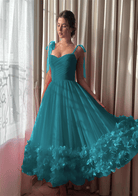 Classic Spaghetti Strap Layered 3D F lowers Prom Dress