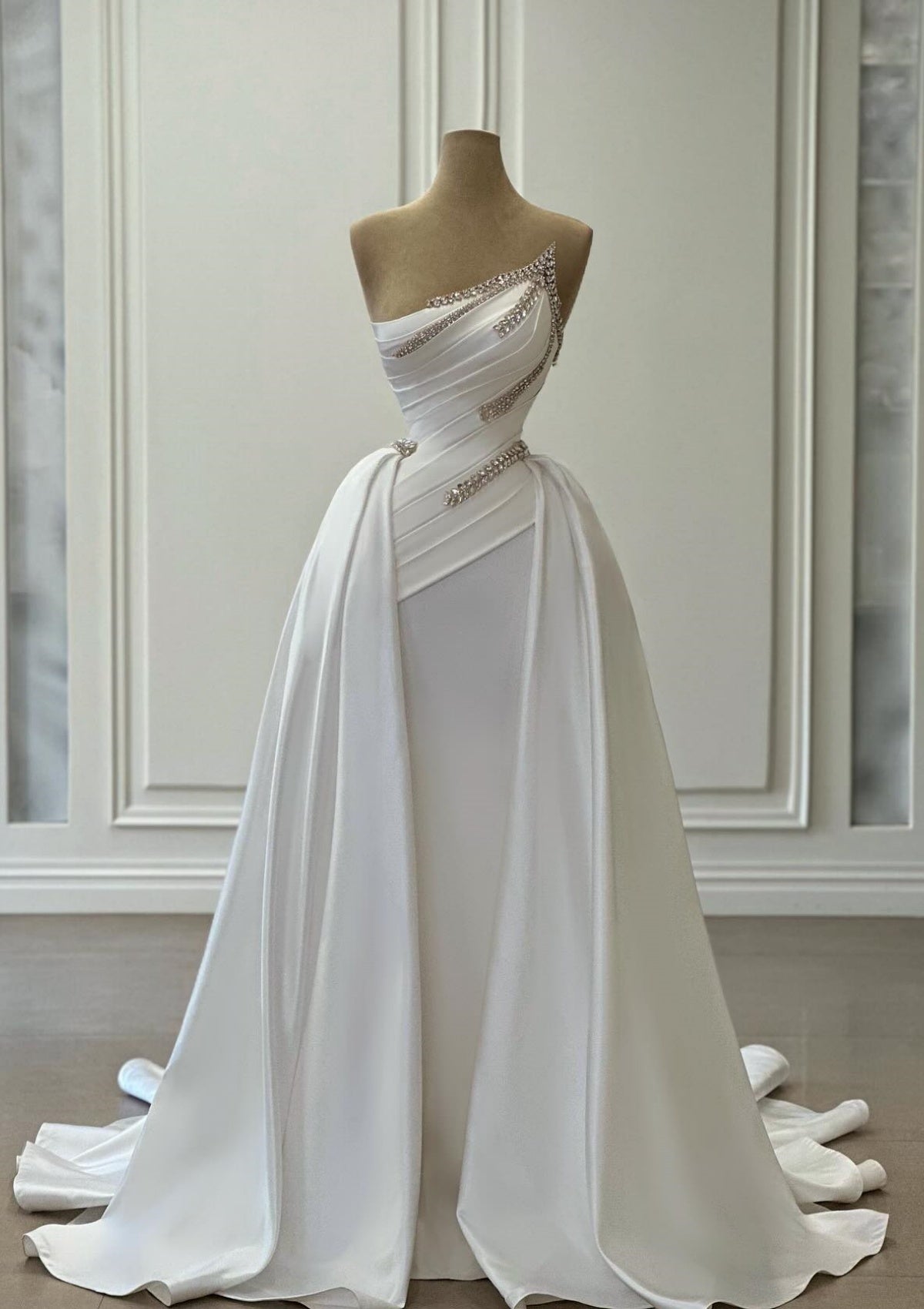 Classical Sleeveless A Line Wedding Dress with Sparkling Crystal Trim