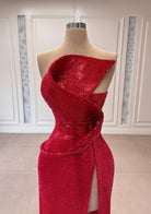 Column Asymmetrical Neck Pleated Waist Prom Dress with Train