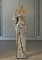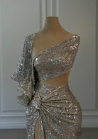 Column One Shoulder Sequin Cutout Prom Dress with Slit