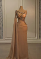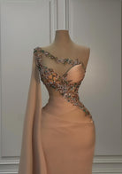Column Sequin Appliques Sweetheart Evening Dress with Draped Sleeves