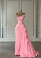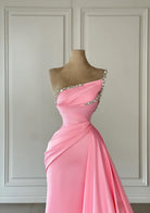 Designed Asymmetrical Neck Pink Evening Dress with Draped Floating Piece
