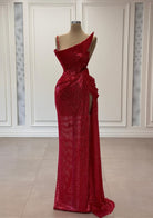 Designed One Spaghetti Strap Pleated Long Prom Dress