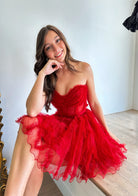 Dreamy A Line Sweetheart Short Tulle Prom Dress