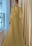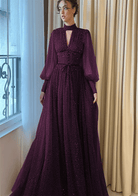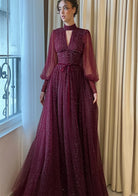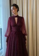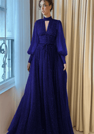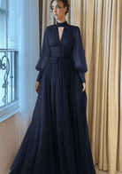 Elegant Long Sleeves Cut Out Sequin Tulle Evening Dress