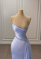 Elegant Spaghetti Strap Column Satin Prom Dress with Side Train