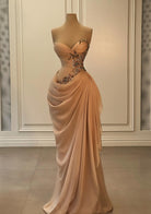 Elegant Sweetheart Sparkly Appliques Pleated Evening Dress