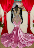 Flare Beaded Illusion Neckline Velvet Evening Gown with Train