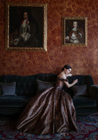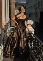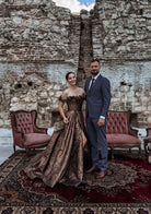 Glamorous Metallic Off Shoulder Prom Dress with Ruffled Detail