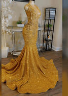 Gorgeous Illusion Neckline Beaded Evening Dress with Flowing Sparkle Train
