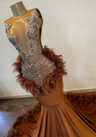 Gorgeous Scoop Neck Rhinestone Satin Evening Dress