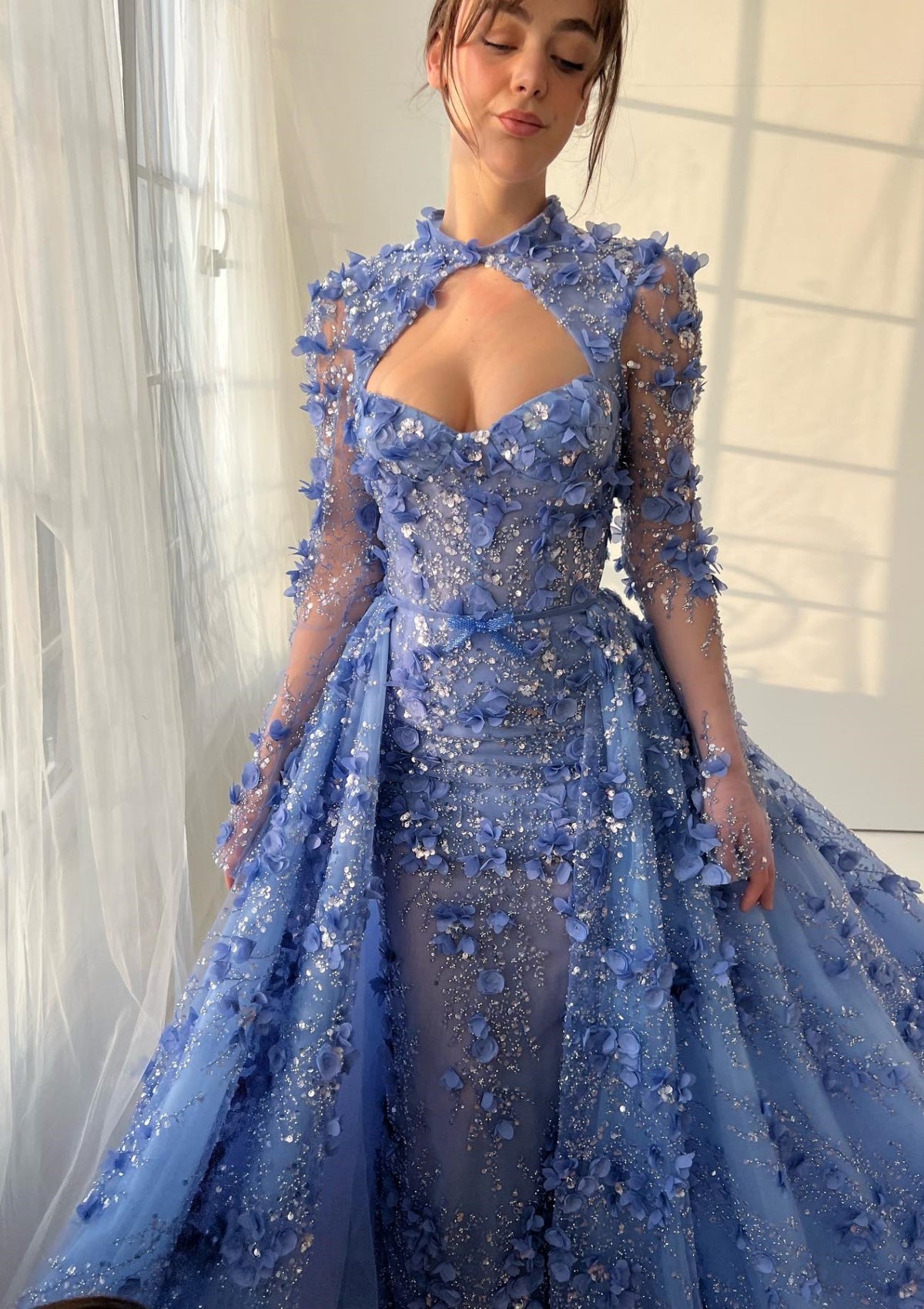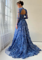 Gorgeous Sequin 3D Flowers Cutout Tulle Prom Dress