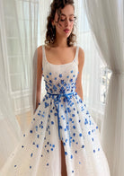 Gorgeous Sleeveless Square Neck 3D Flowers Prom Dress with Pearls
