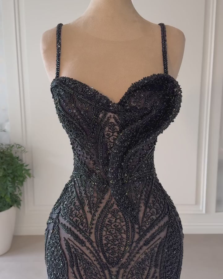 Gorgeous Spaghetti Strap 3D Pleated Beading Evening Dress
