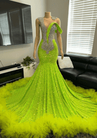 Illusion Asymmetrical Neck Sequin Tulle Trim Evening Dress