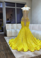 Illusion Scoop Neck Rhinestone Sparkly Evening Dress
